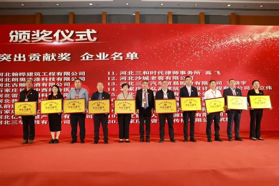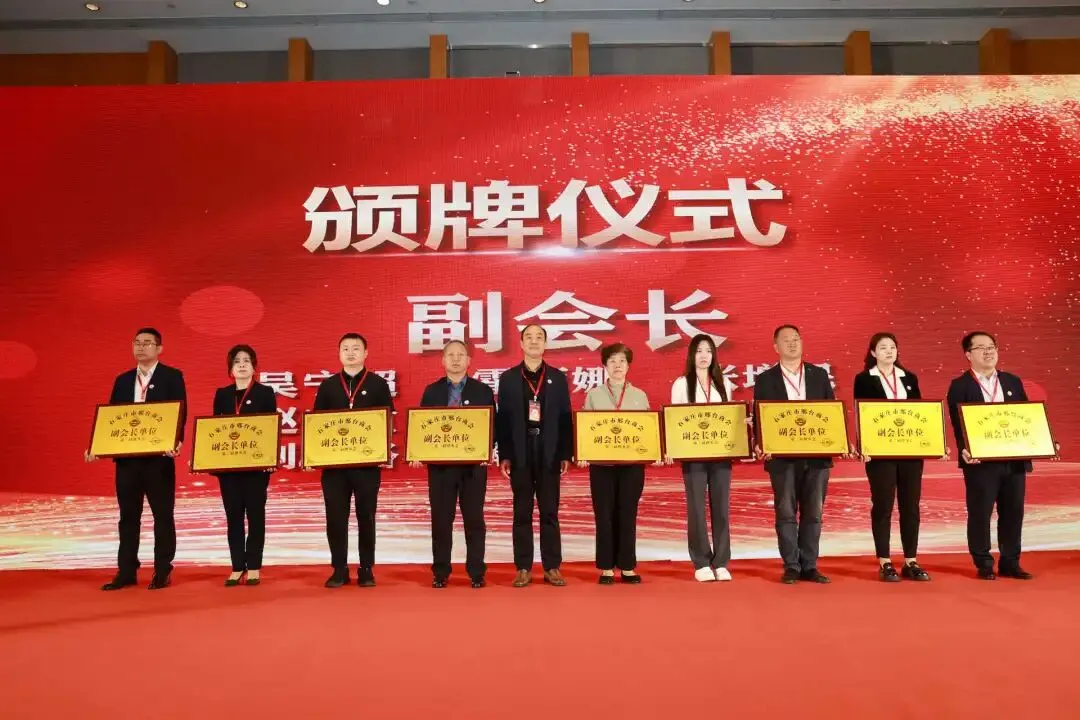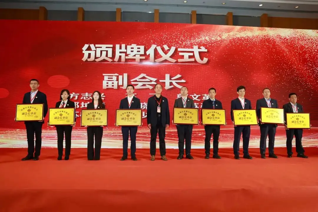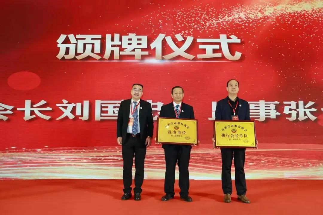 期间举行了庄重的授牌仪式。由石家庄市统战部副部长、市工商联党组书记李会强同志为新当选会长贺利斌颁发会长牌匾;贺利斌会长为执行会长刘国忠、监事张士忠授牌;刘国忠执行会长为常务副会长、副会长授牌;同时为荣誉会长、荣誉副会长颁发奖杯和证书。