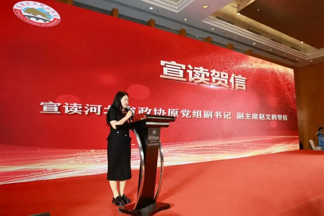 石家庄市邢台商会常务副会长白云平宣读了河北省政协原党组副书记、副主席赵文鹤同志为大会发来贺信,贺信高度肯定了商会多年来为石邢两地产业对接、招商引资、公益帮扶等方面发挥的桥梁纽带作用。希望商会以此次换届为新起点,继续当好会员的“温暖家园”,深化石邢两地交流合作,引导邢商坚守实业、反哺家乡,在服务两地高质量发展中展现新担当、实现新作为。