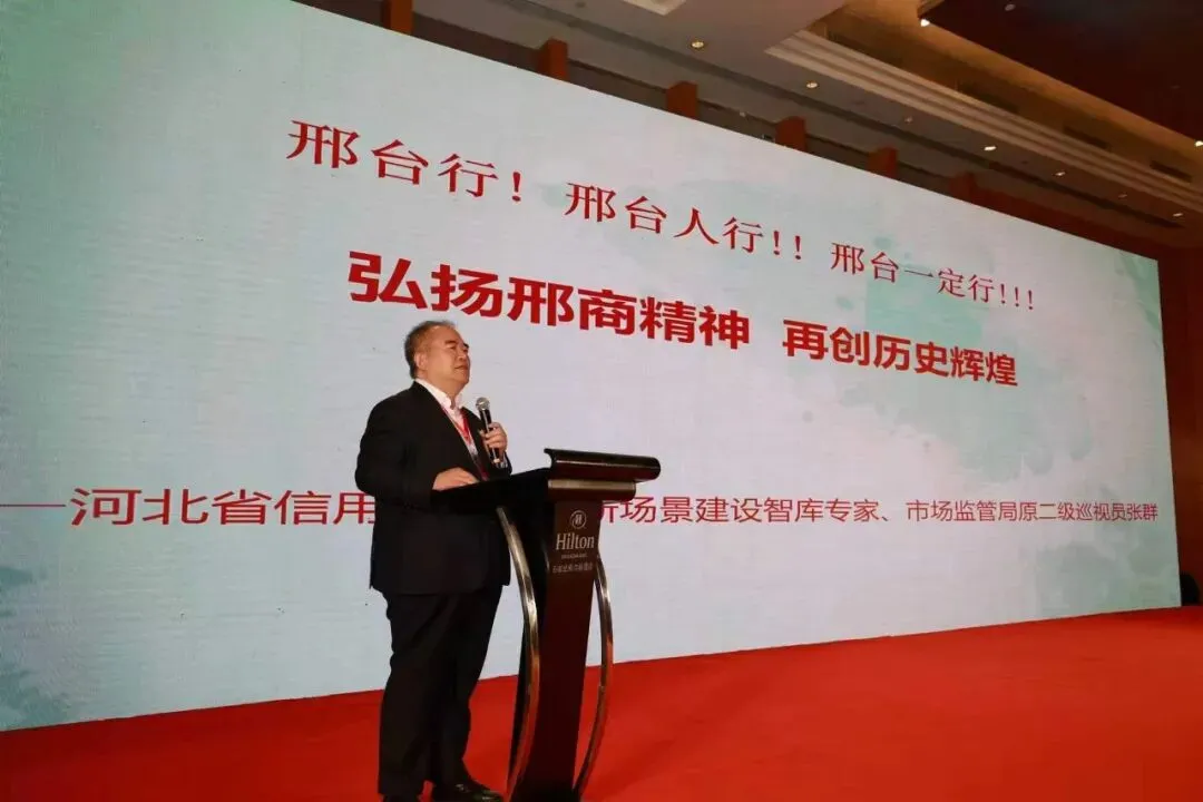 河北省市场监督管理局原二级巡视员、河北省信用、品牌、新场景建设智库专家张群做了《弘扬邢商精神 再创历史辉煌》的专题报告。