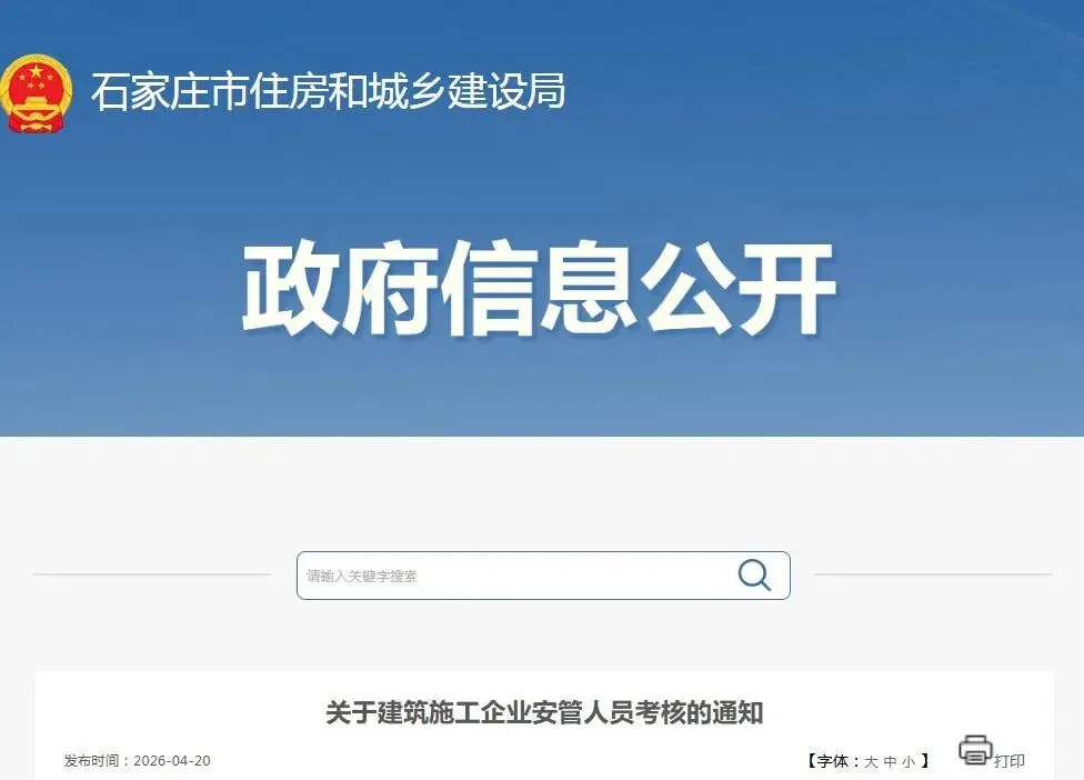 为保障企业安管人员的配备,拟定于2026年4月举办建筑施工企业安管人员考核。请各单位合理安排时间,保证考核人员准时参加。