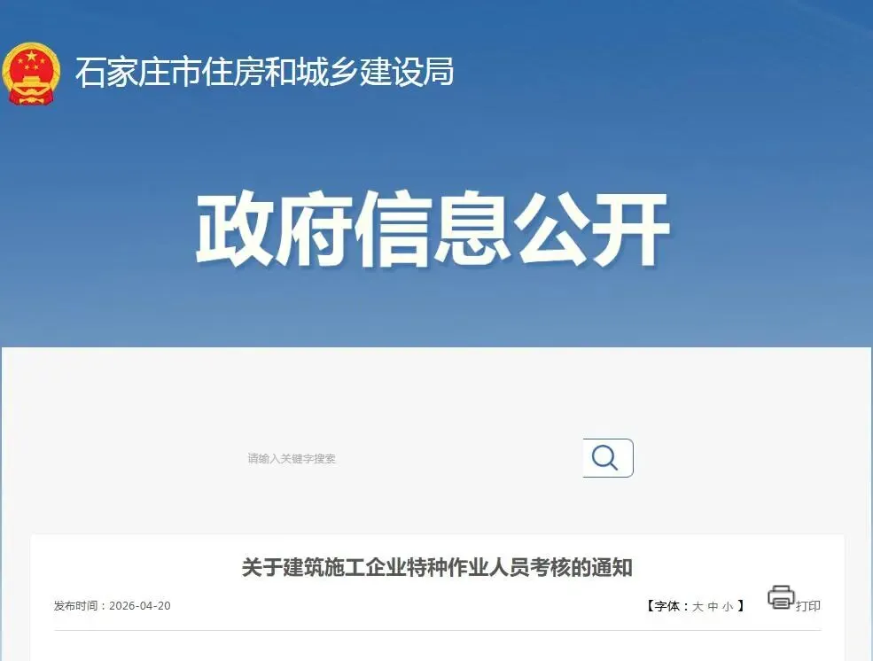 为保障企业特种作业人员的配备,拟定于2026年4月举办建筑施工企业特种作业人员考核。请各单位合理安排时间,保证考核人员准时参加。