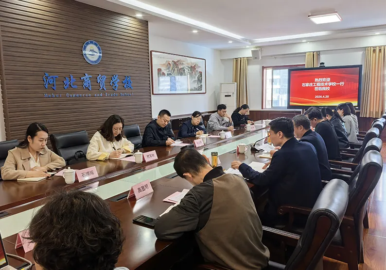 4月20日,石家庄工程技术学校党委委员、纪委书记张宝慧一行7人到我校就数智校园建设进行考察交流。河北商贸学校党委副书记、纪委书记张兴华主持,相关业务科室负责人参加座谈。座谈会上,双方围绕智慧教学平台应用、在线精品课建设及校本数据中心运维等展开深入研讨。我校重点展示了学生成长智能分析平台、AIGC BAR等创新实践成果,生动呈现了人工智能赋能教育教学管理的应用场景,来访同仁对我校数字化转型取得的成效给予高度评价。