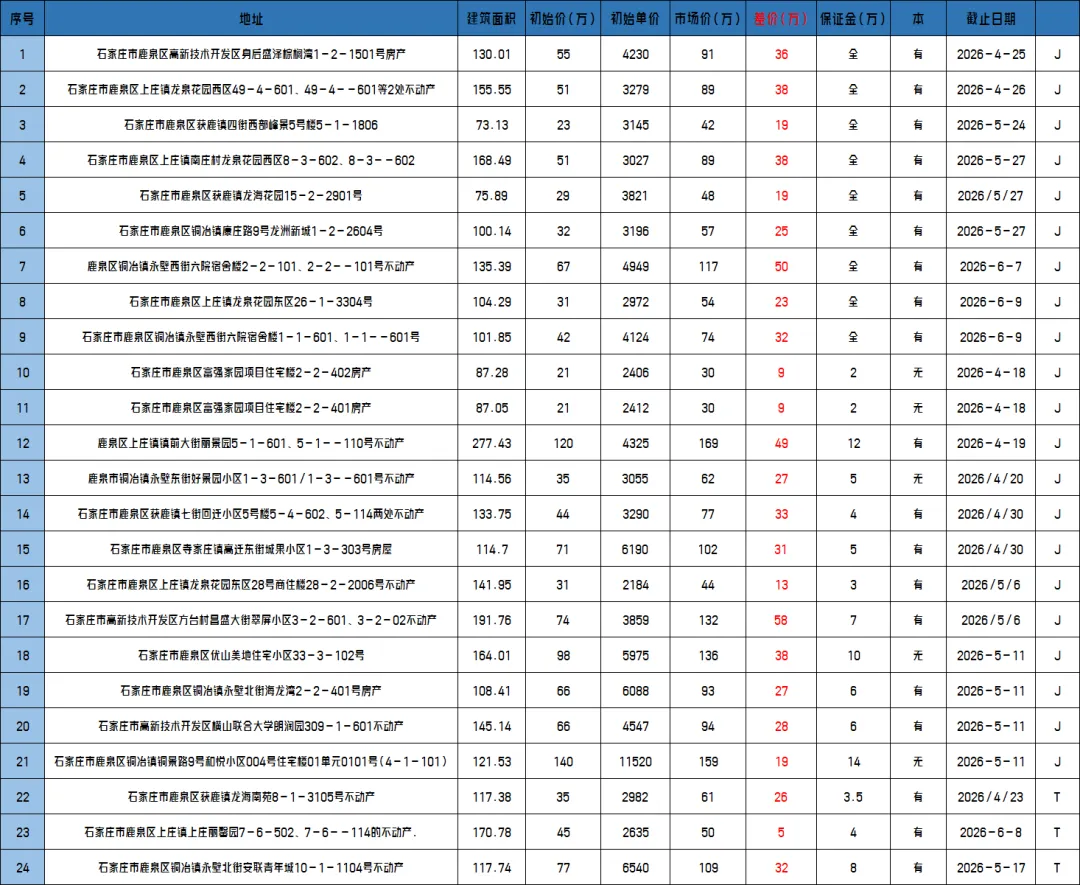 >石家庄最新法拍房源20260420