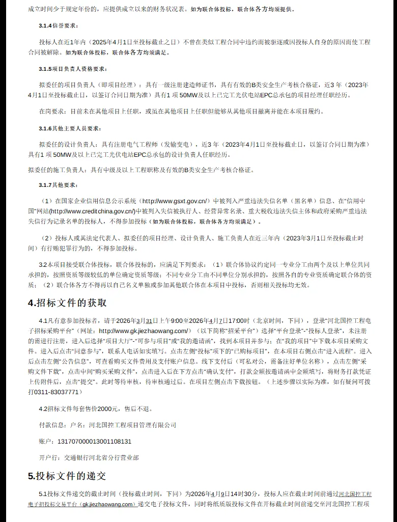 - 第二中标候选人为中国电建集团北京勘测设计研究院有限公司,投标单价:3.13元/W!