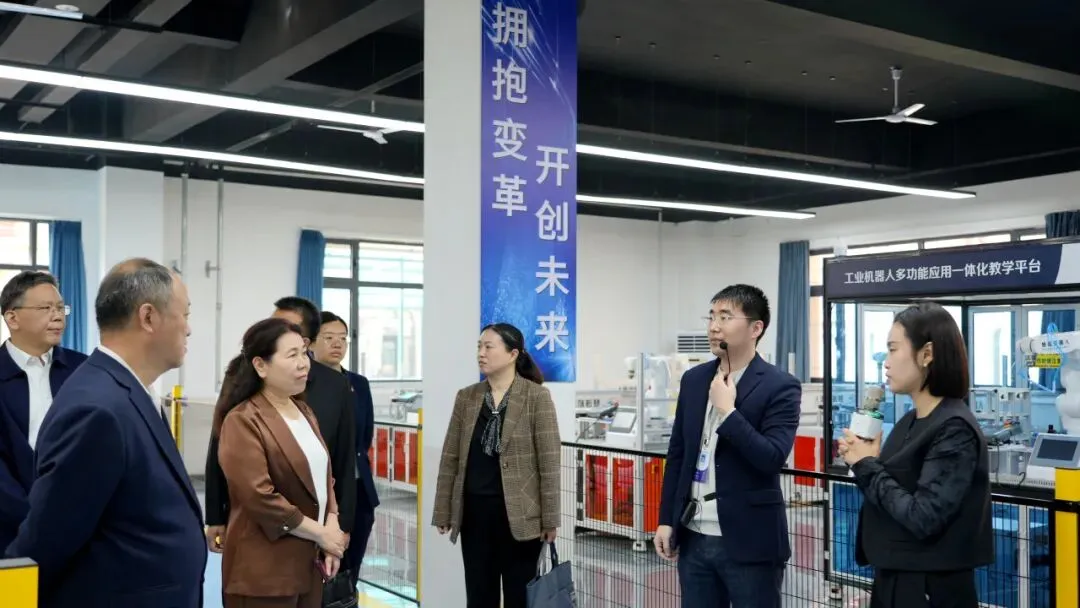 来宾实地观摩了学校实训室和产业学院、国际交流与合作中心以及特色展室群,系统了解了学校在校企协同育人、开放办学方面的实践成效,以及职教特色、红色文化和优秀传统文化传承等特色育人成果。