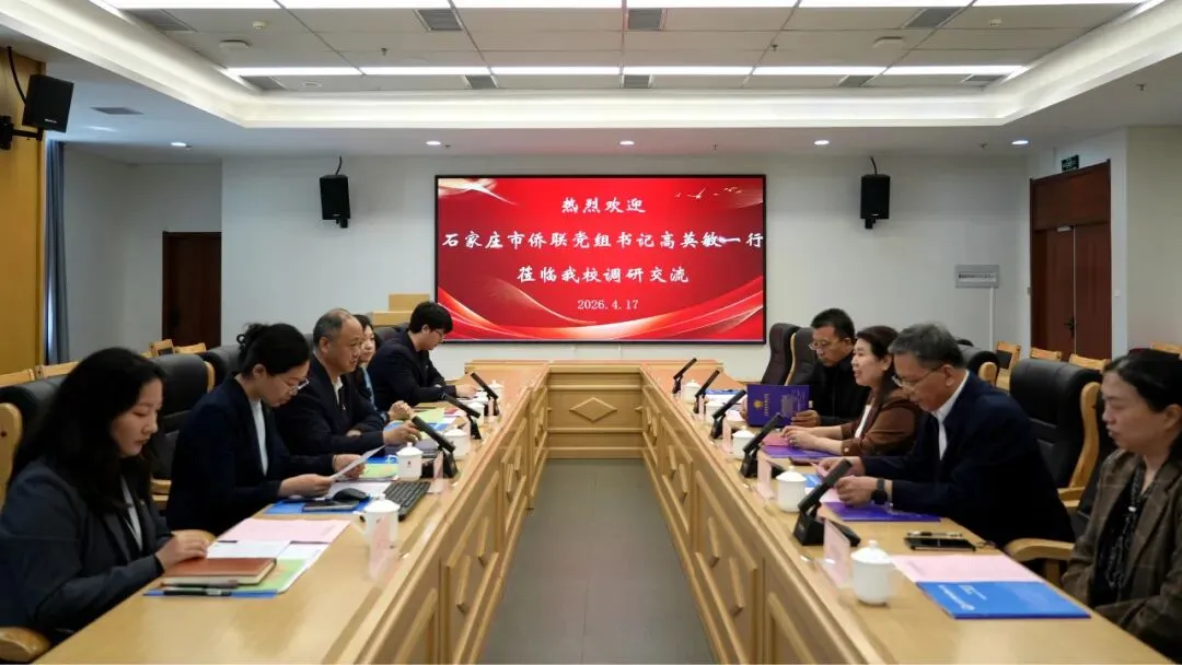 4月17日,石家庄市侨联党组书记高英敏、副主席刘彬、二级调研员相志朋、经济科技部部长田艳敏一行到我校考察调研。学校党委书记薛向东、校长助理邓佳星出席座谈活动,国际交流与合作中心主任李芳、石家庄市第十二次归侨侨眷代表大会我校代表参加调研。