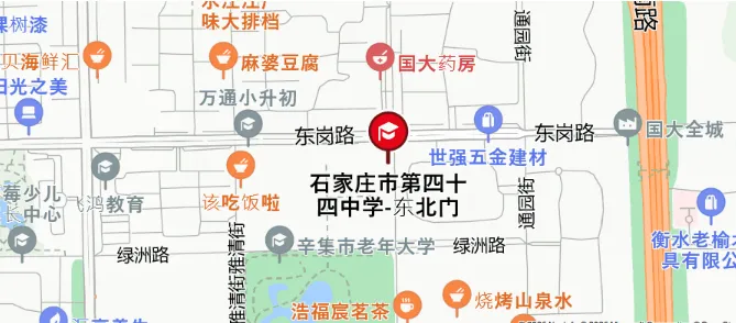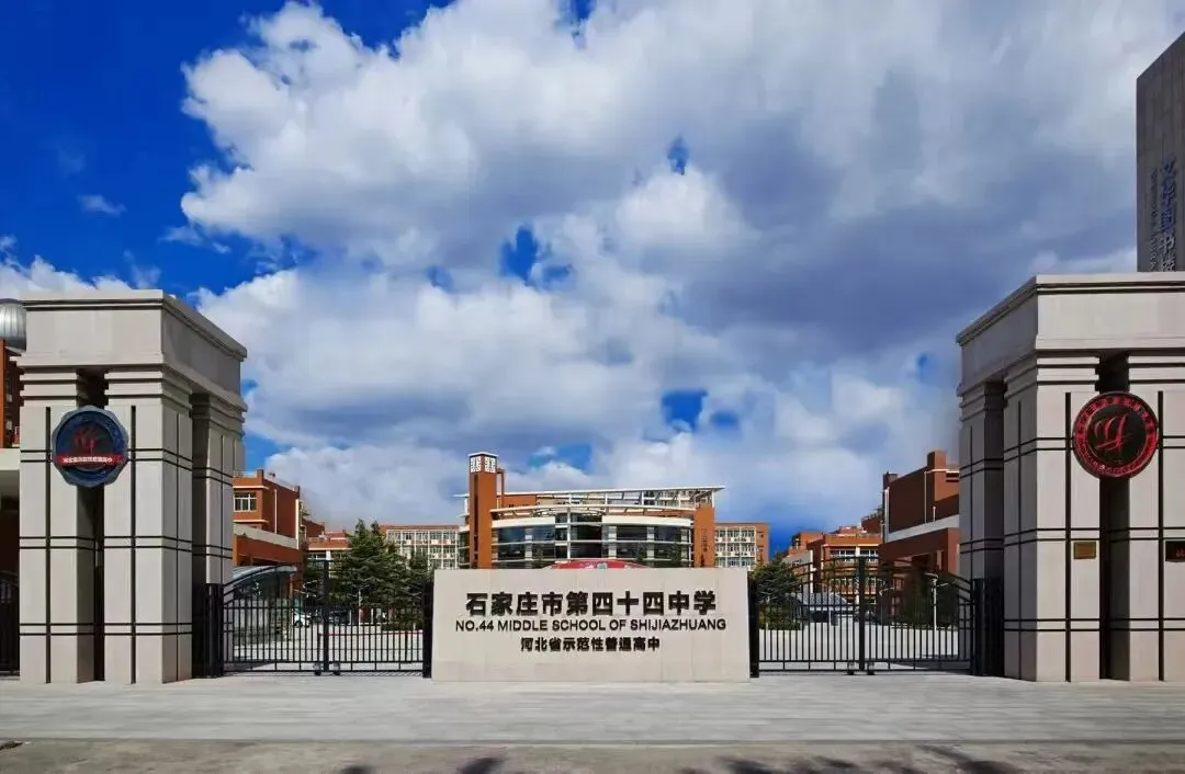 石家庄市第四十四中学隶属裕华区,是一所朝气蓬勃,快速发展的现代化学校,是河北省示范性高中:位于石家庄市绿洲路:44 号号(东门位于谈固东街158 号,西北门位于东岗路 156 号),学校是石家庄主城区规模较大,设施先进,设计合理的公办完全中学。2020 年被省教育厅认定为“省级示范性高中”。