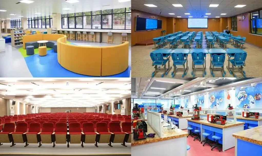 校园规划占地面积 140 亩,建筑面积 7 万余平方米。设计建设教学楼,实验楼,办公楼,图书信息中心,餐厅,运动场等建筑。在校初中学生 3220 人,教学班 60 个,教工 243 人。学校所有教室都配备多媒体教学设施。44 中学是 2 环以内设计合理,教学设施先进的义务教育公办学校。