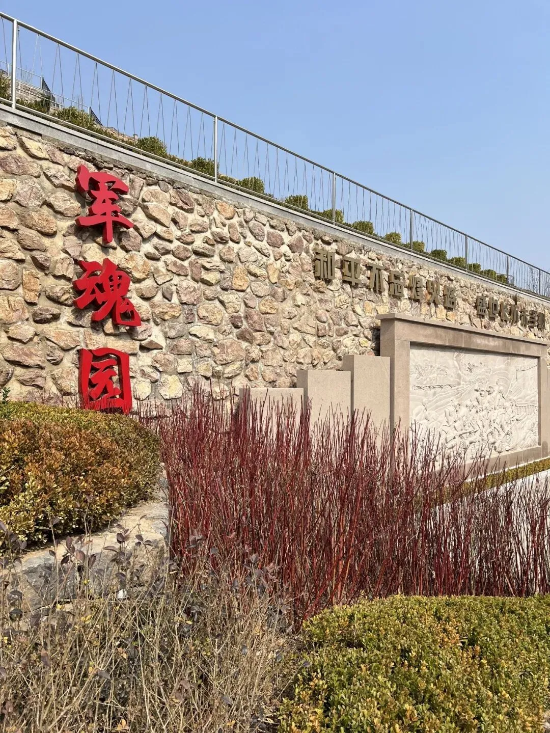园内矗立5米高英烈纪念柱、象征精神永续的火炬雕塑,更有「解放石家庄纪念墙」以浮雕镌刻峥嵘往事。五星、军旗、钢枪、橄榄枝等元素融入每一处景观与碑刻,将军人的忠诚、无畏、担当,刻进每一寸空间。