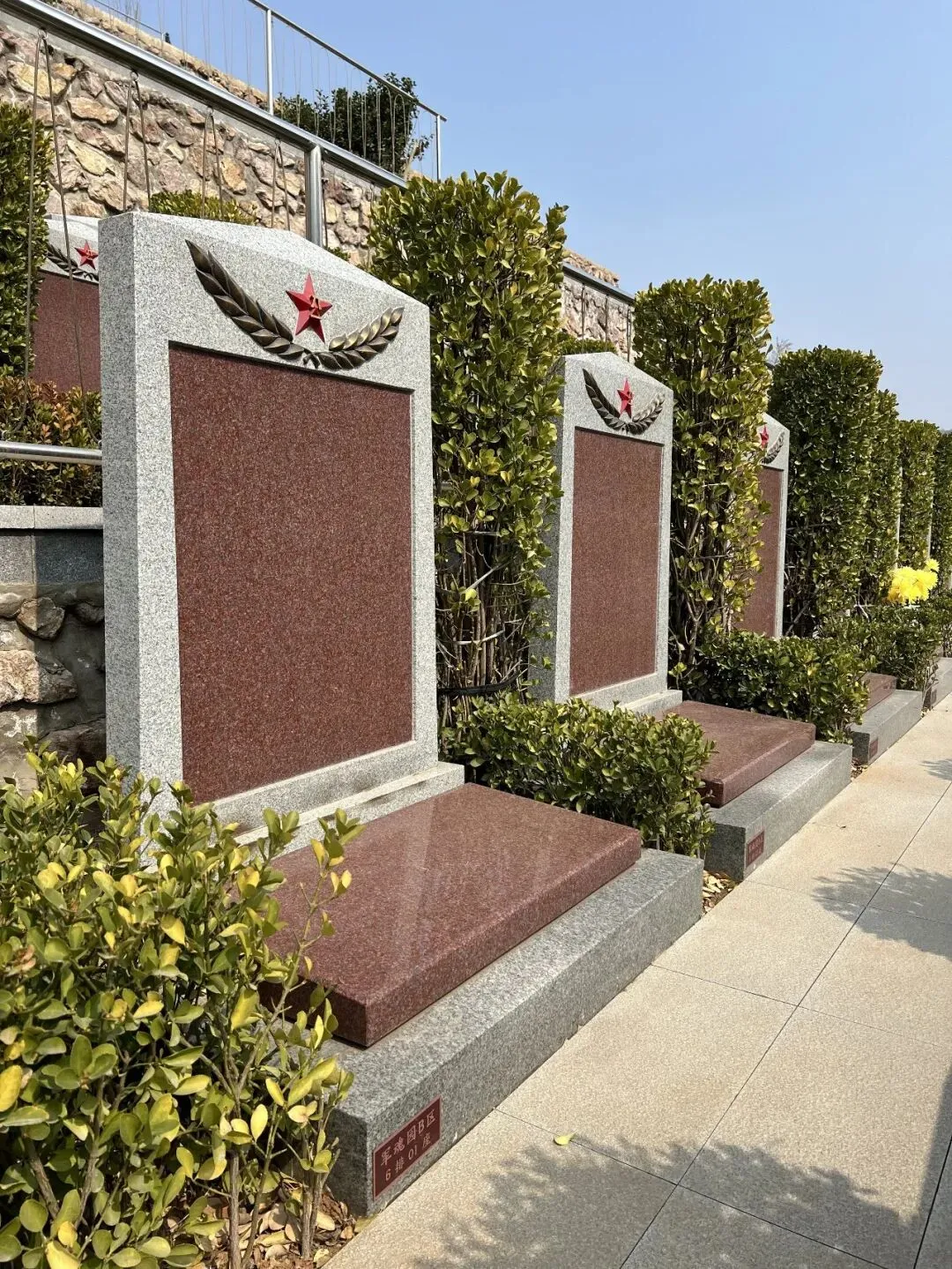 • 设计至敬:主碑以沉稳灰为底,衬赤诚红基,顶嵌闪耀红星;两侧雕饰橄榄枝与钢枪,寓意「以战止战、守护和平」;可定制军徽、军衔、服役年限、战功铭文,让每一段军旅岁月,都被永久铭记。