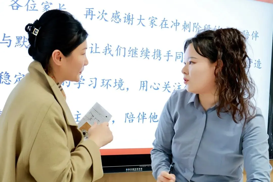 主会场结束后,各位家长移步各班分会场,与班主任及各科任课教师深入交流。老师们结合班级学情、学生个体状态细致分析,针对性提出后期学习建议,并耐心解答家长疑问,实现精准沟通、精准助力。