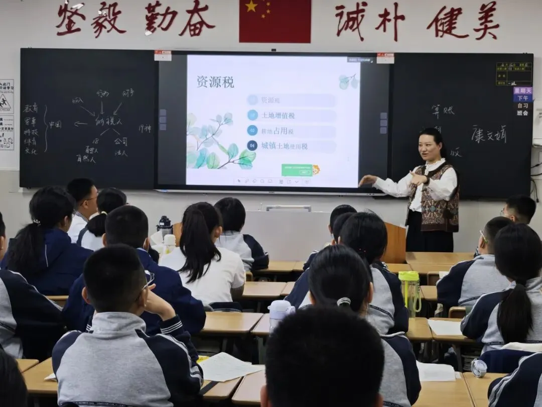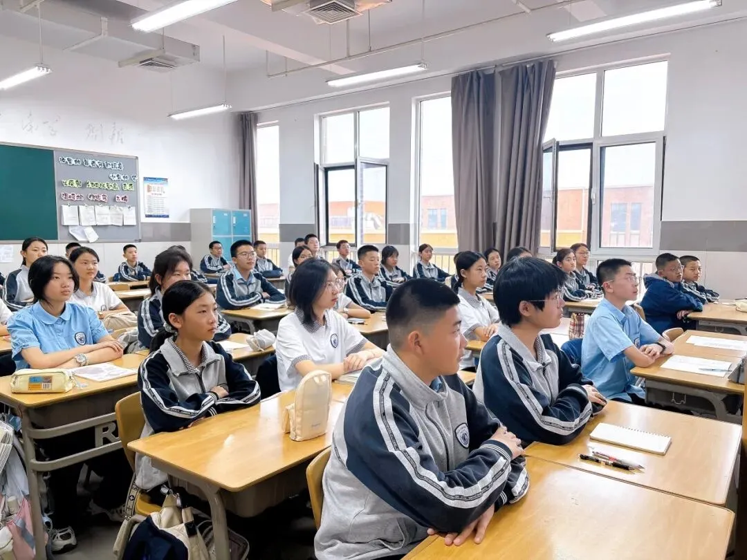 课堂上,初一的学子们坐姿端正,眼神中闪烁着好奇与专注。