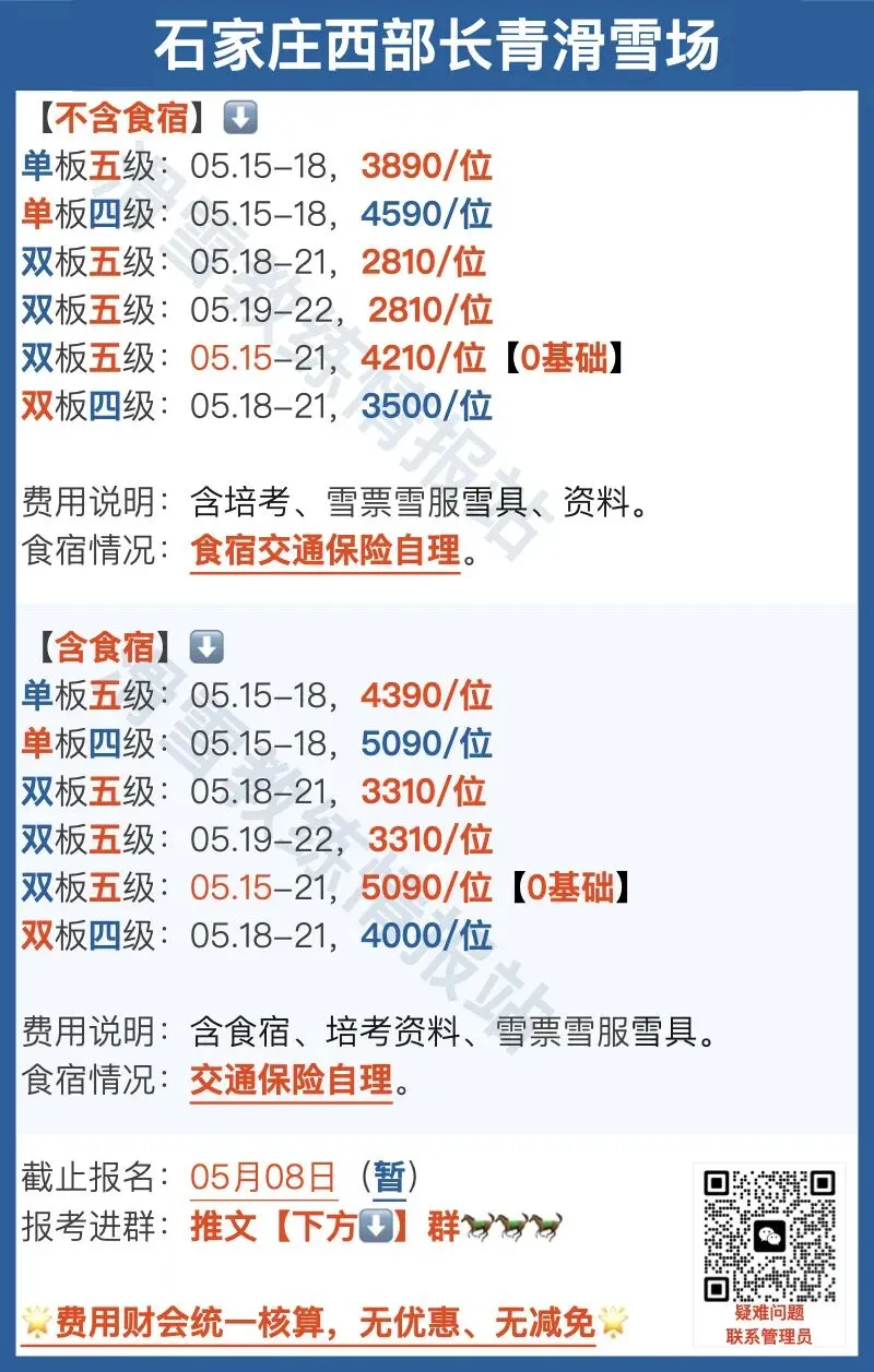 截止培训开始当天,持国职双板5级满1年,可报考国职双板4级;持国职单板5级满1年,可报考国职单板4级。