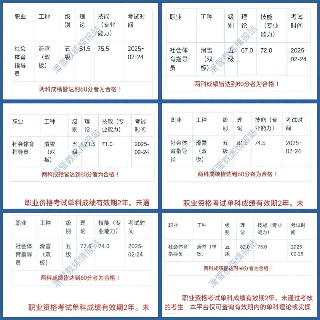 理论、实操、急救成绩均达60分,鉴定通过,由体育局制发滑雪国职证书。