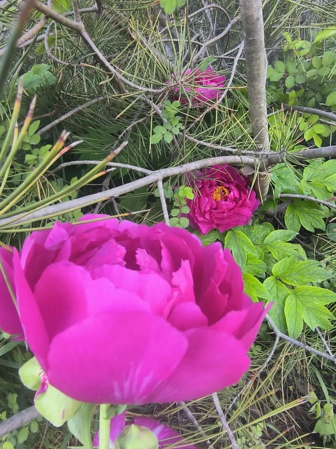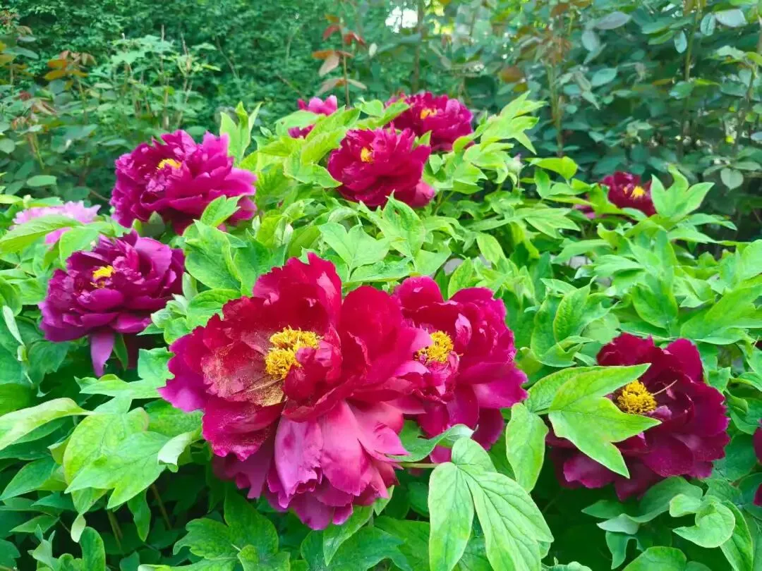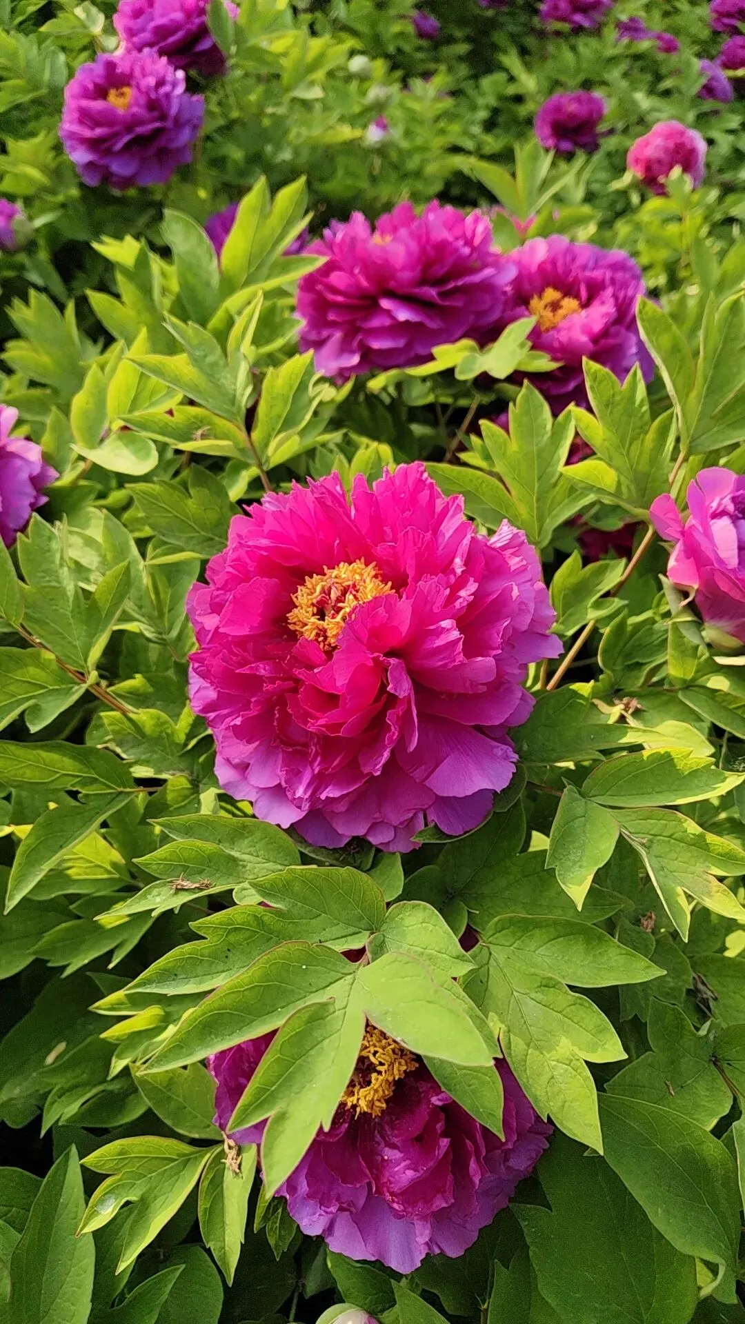 这片牡丹地,种了也有几年了。以前有一次看到零星的花,如今枝繁叶茂的,已经是很大规模野外牡丹园了。