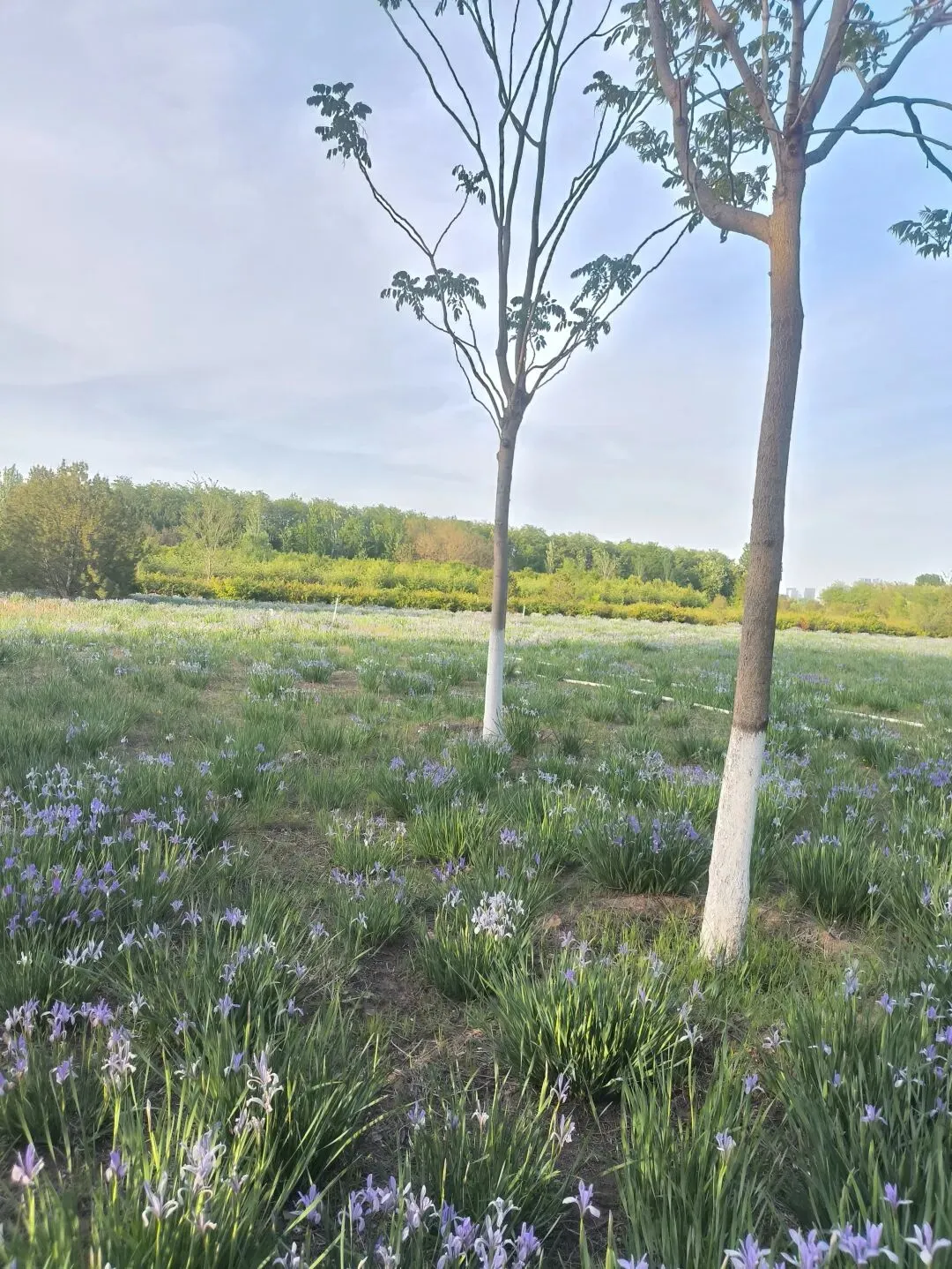 这几天马蔺正值花期,一大片的蓝白和蓝紫。