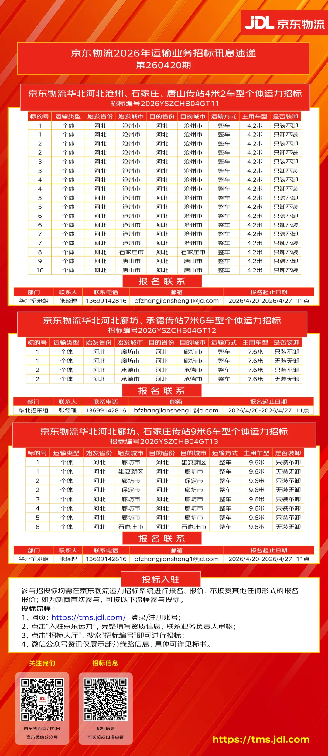 【招标公告】沧州石家庄唐山传站4米2车型个体直招、廊坊承德传站7米6车型个体直招、廊坊传站9米6车型个体直招