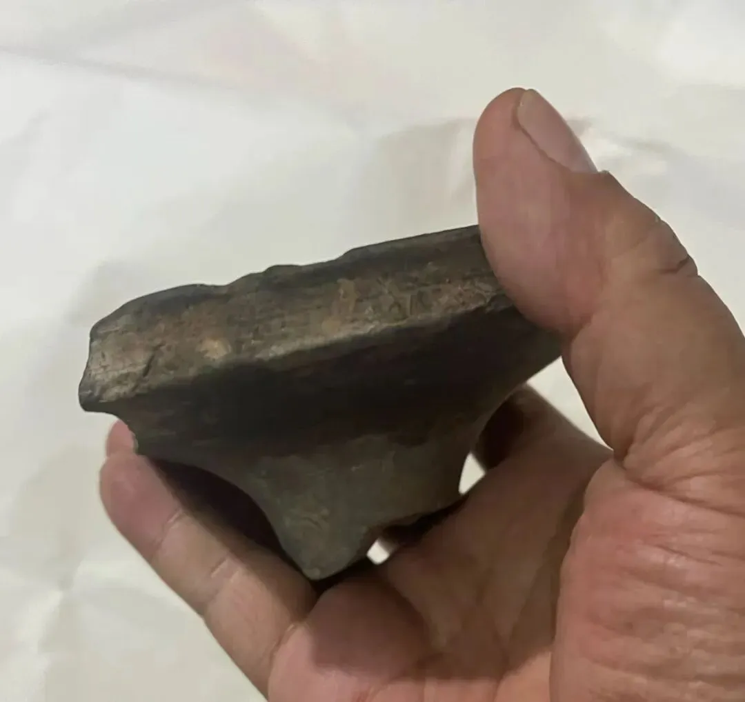 这块刻有文字的陶片,并非考古队出土文物,而是一位朋友十多年前,在石家庄东垣古城遗址现场偶然捡拾到的。看似不起眼的一块残片,上面却留有清晰的古代刻画痕迹,正是这模糊却有力的字迹,牵动着许多热爱石家庄历史的人的心。