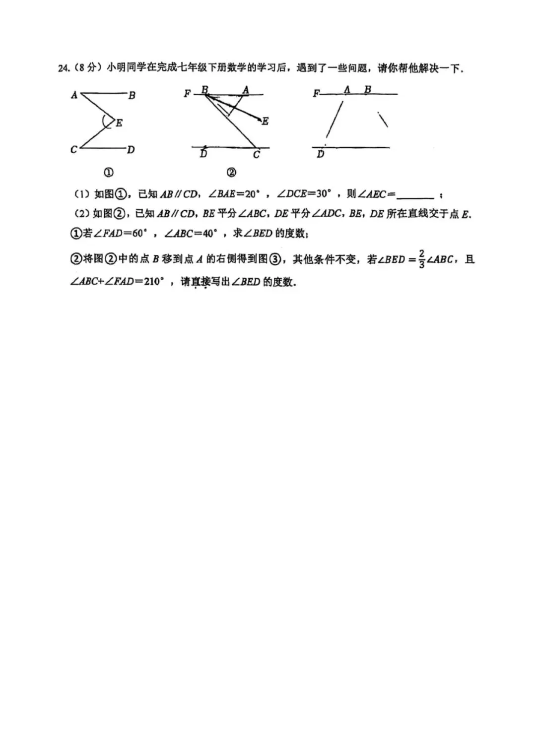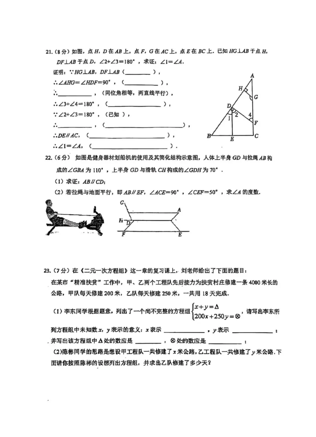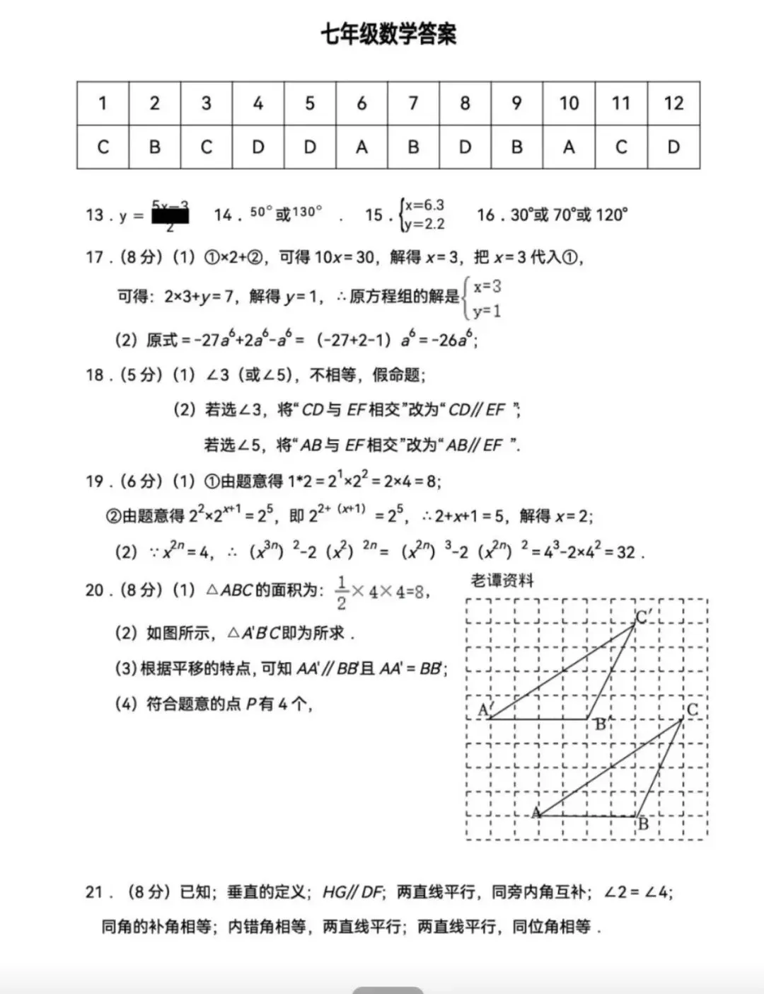 26.1河北省期末考试七年级数学试卷含答案(冀教版)