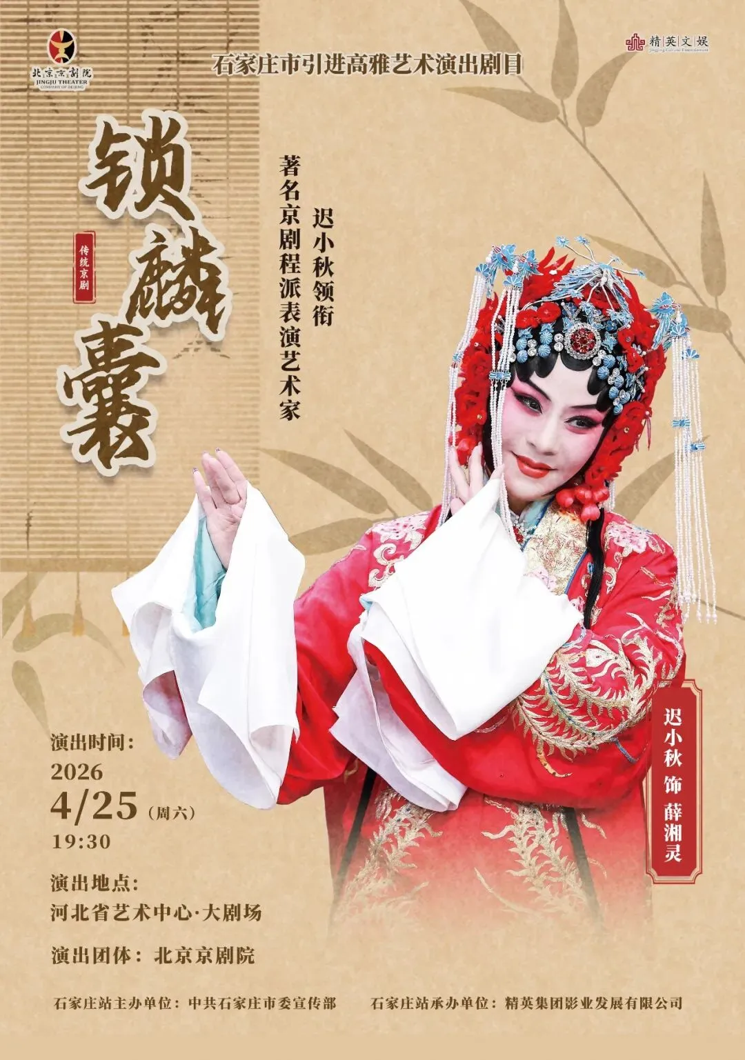 迟小秋,一级演员,非遗传承人,著名京剧表演艺术家, 现任全国政协委员、北京京剧院党委委员、北京戏剧家协会副主席、中国戏剧家协会理事、曾任第十届全国人大代表。