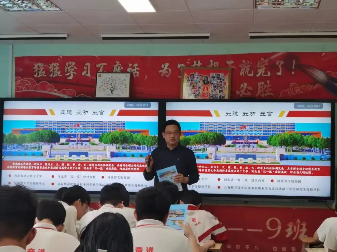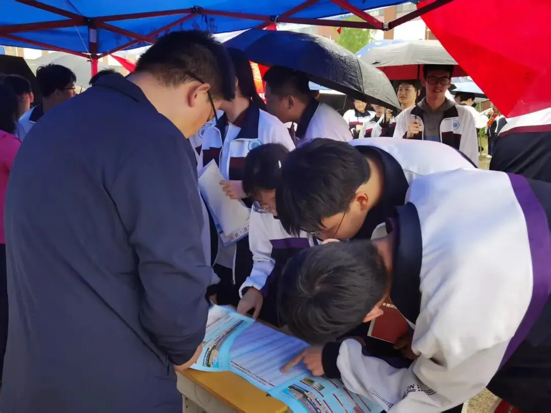 在各高中宣传现场,我校招生宣传教师结合学校办学特色,通过录制专属祝福视频、开展专题招生宣讲、设立咨询展位等多种形式,与高中学子及教师进行面对面深入交流。宣讲过程中,宣传教师系统解读了我校的办学历史、学科优势、人才培养、办学资源以及我校近年在河北省的录取分数、招生计划等,让学子们全面了解学校的办学实力与发展前景。针对考生及家长普遍关注的新高考志愿填报技巧、专业选择方向、转专业政策、就业升学优势等热点问题,宣传教师耐心细致地逐一解答,现场互动频繁、反响热烈,切实为学子们排忧解难,助力其科学规划升学路径。