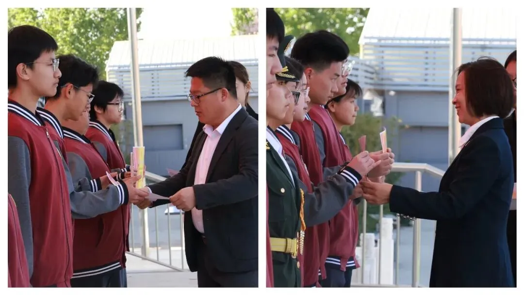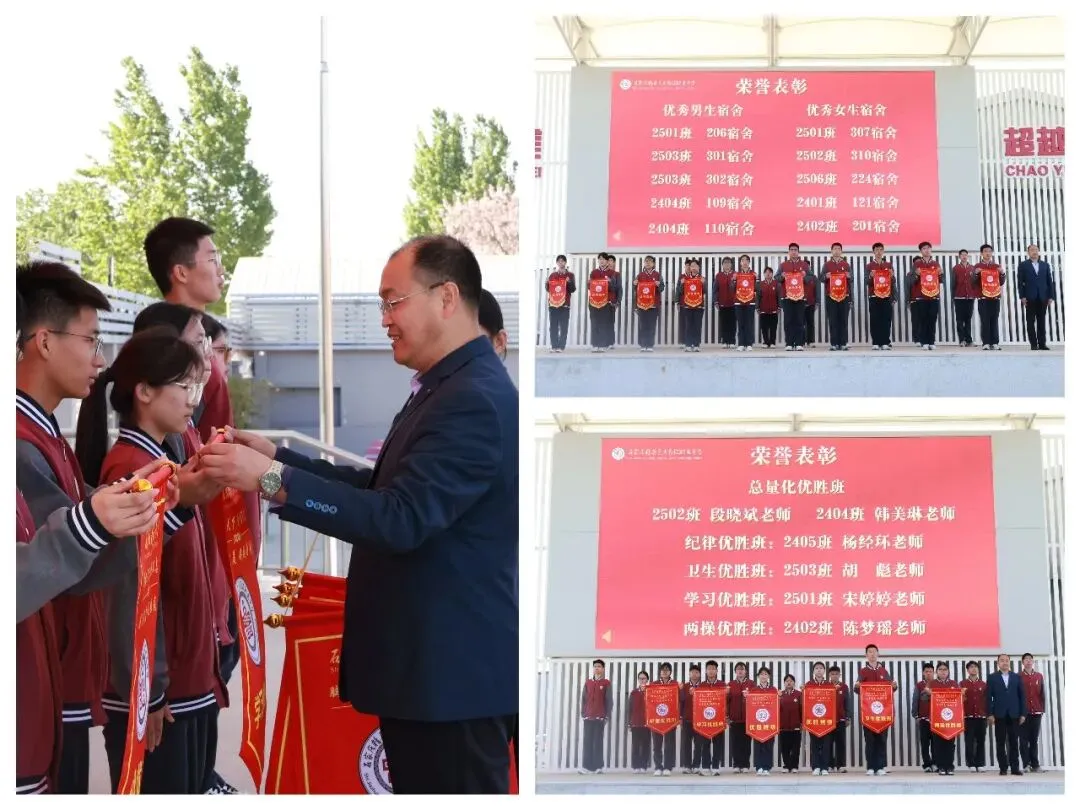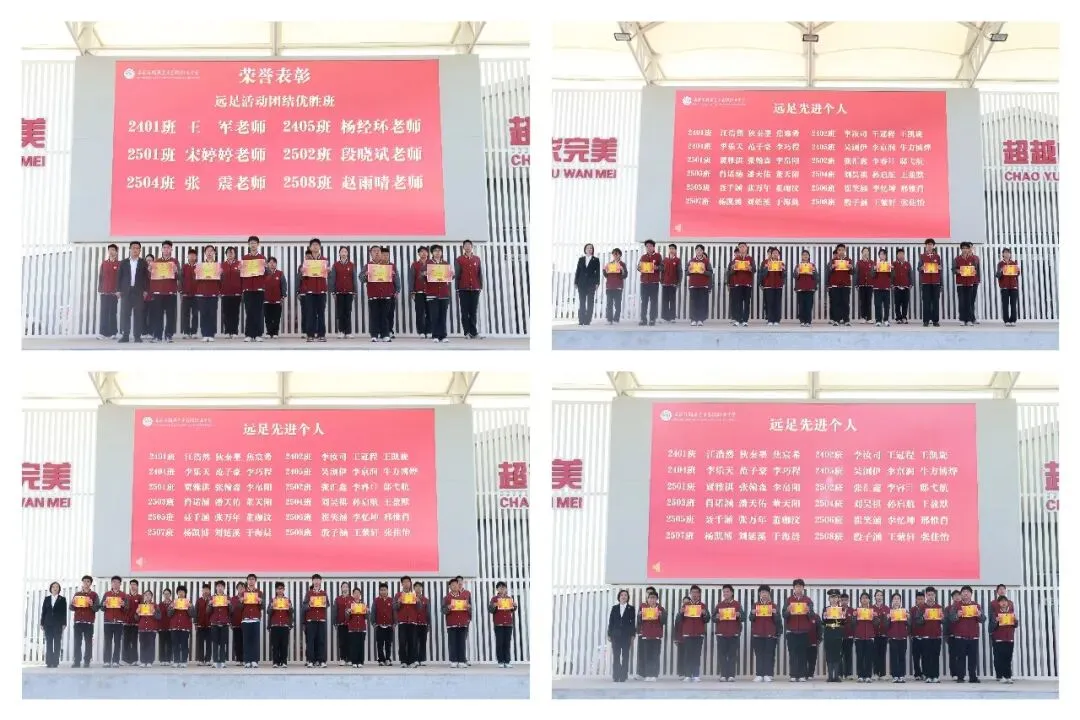 为激励先进、凝聚力量,仪式上对远足活动及上周表现优异的集体与个人进行了表彰。主持人王军主任宣读表彰名单,副校长赵国庆、党支部副书记王巧红为远足活动获奖集体、个人颁发荣誉奖状。
