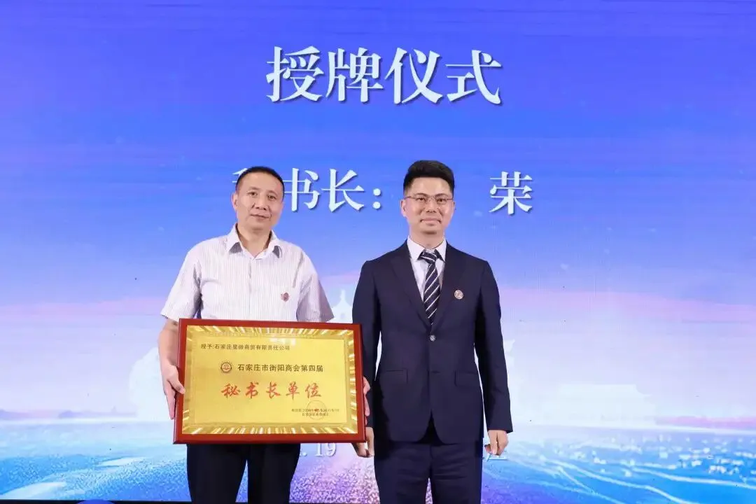 大会现场举行了庄重的授牌仪式,石家庄市工商联二级调研员贾建勇、衡阳市工商联党组副书记/副主席李宏雪,共同为新当选的石家庄市衡阳商会第四届会长、名誉会长授牌;衡阳市人民政府驻北京联络处副主任马雅琴、衡阳高新控股集团工会主席邹振华为执行会长单位授牌;石家庄市工商联会员部部长李柱、衡阳市投资促进事务中心主任肖春红为副会长以上单位授牌;衡南县政协副主席|工商联主席|总商会会长贺桂香、衡阳县政协副主席|工商联主席|总商会会长贺小姣、衡东县政协副主席|工商联主席|总商会会长许素珍、祁东县政协副主席|工商联主席|总商会会长曾湘莲为理事单位授牌;河北省原税务局副局长谢江宜为监事单位授牌;最后,胡志明会长为秘书长授牌。 现场举行庄严的会旗交接仪式。上一届会长易建元将会旗郑重交到新任会长胡志明手中,鲜红的会旗在手中传递,标志着商会薪火相传、接力奋进、继往开来,也象征着衡商精神代代延续、生生不息。