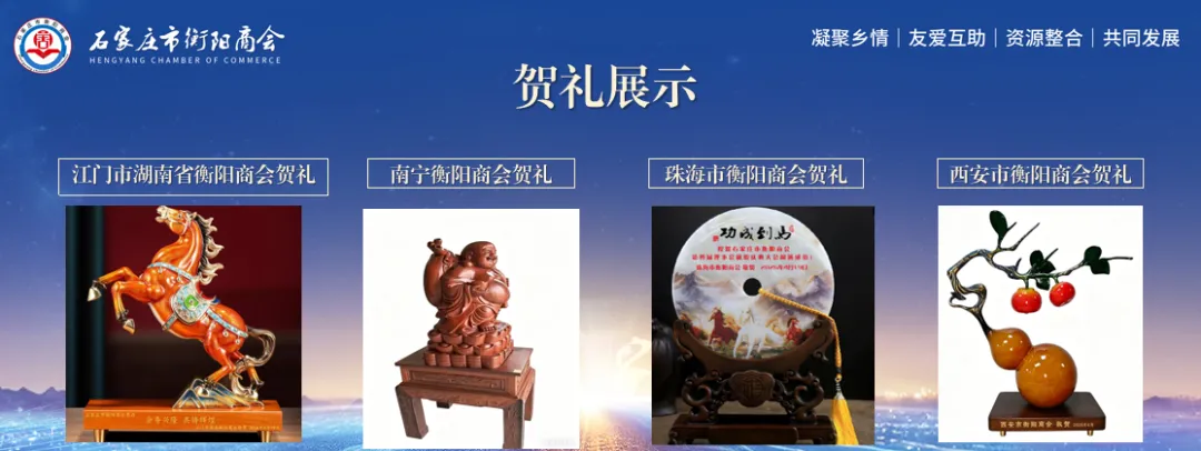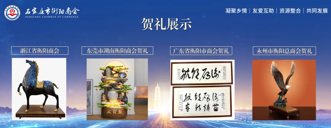 此次大会,不仅有家乡领导的深切关怀,更有来自五湖四海的温情连线。现场,李宏雪主席代表衡阳市委、市政府,将象征“鼎盛千秋”的祝福贺礼送至商会,这份沉甸甸的心意令人倍感温暖。不仅如此,全国各兄弟商会与友好单位也纷纷隔空喊话,发来贺信与贺礼,满满的乡情与友谊汇聚一堂,让庆典现场温情满满。