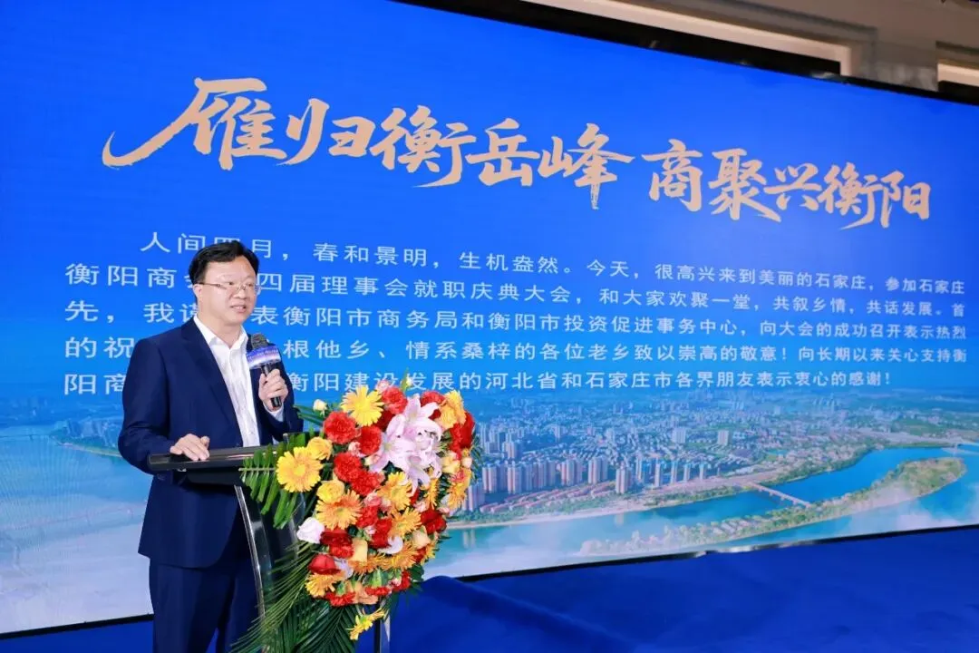 为助力会员把握家乡发展机遇,衡阳市商务局肖春红主任在大会上作专题招商推介。他详细介绍了衡阳当前的产业布局、发展优势与优质营商环境,全面解读家乡招商引资政策与重点合作项目,诚挚邀请在石衡商常回家看看、返乡投资兴业,进一步搭建起冀衡两地经贸交流、合作共赢的坚实桥梁。