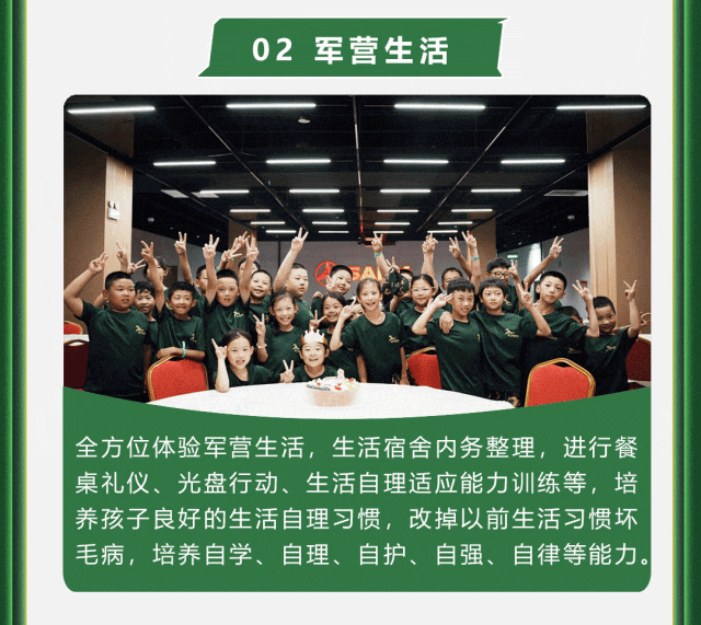 ★夏令营活动采用全封闭式军事化管理,学员统一食宿,活动期间不安排家长到营地探视,如有特殊原因,请提前电话与我部联系;