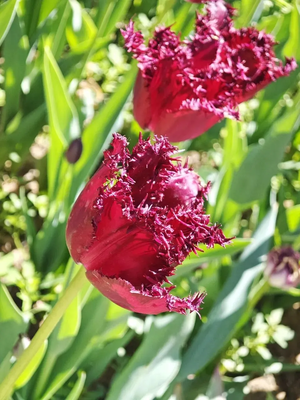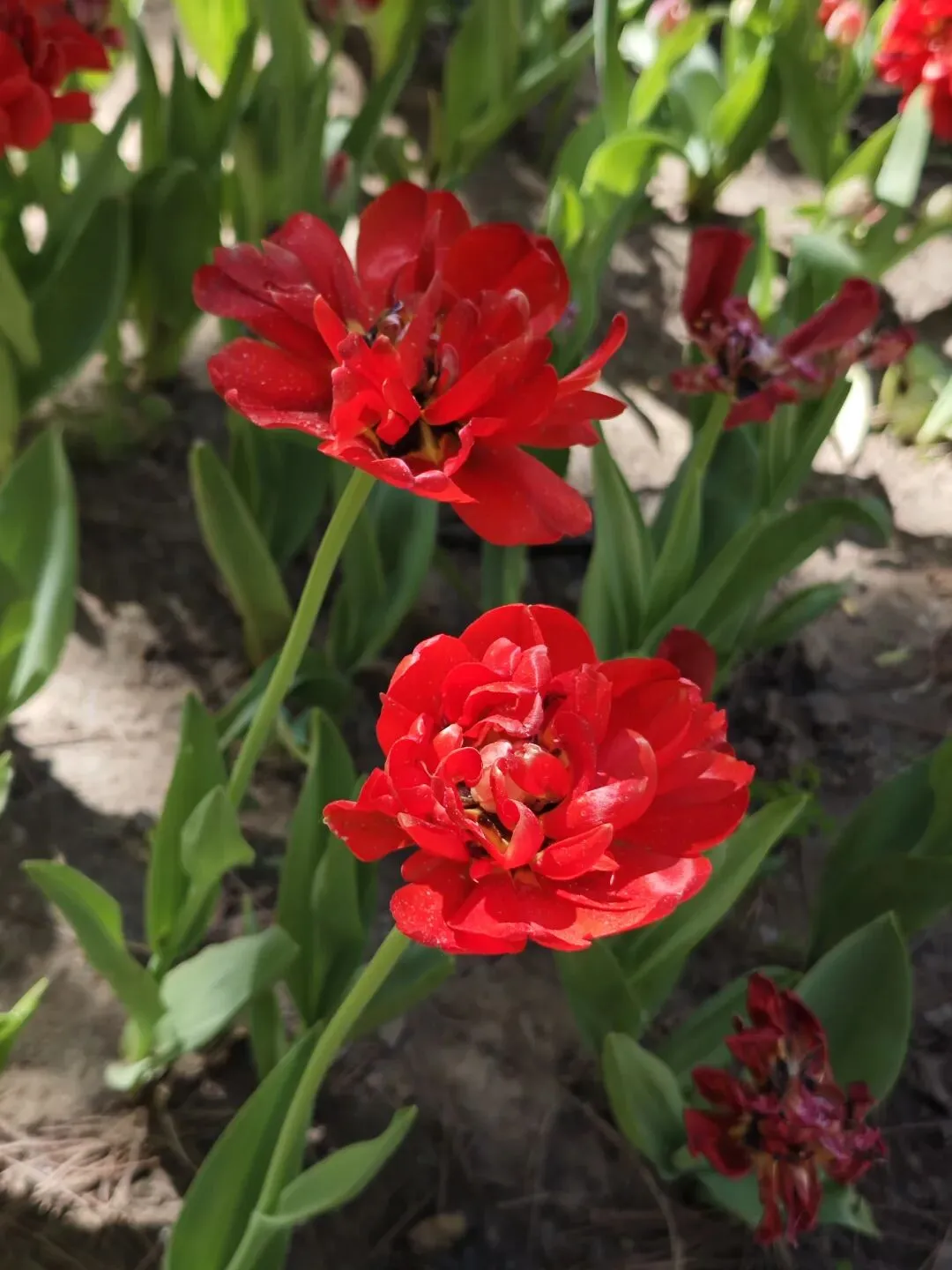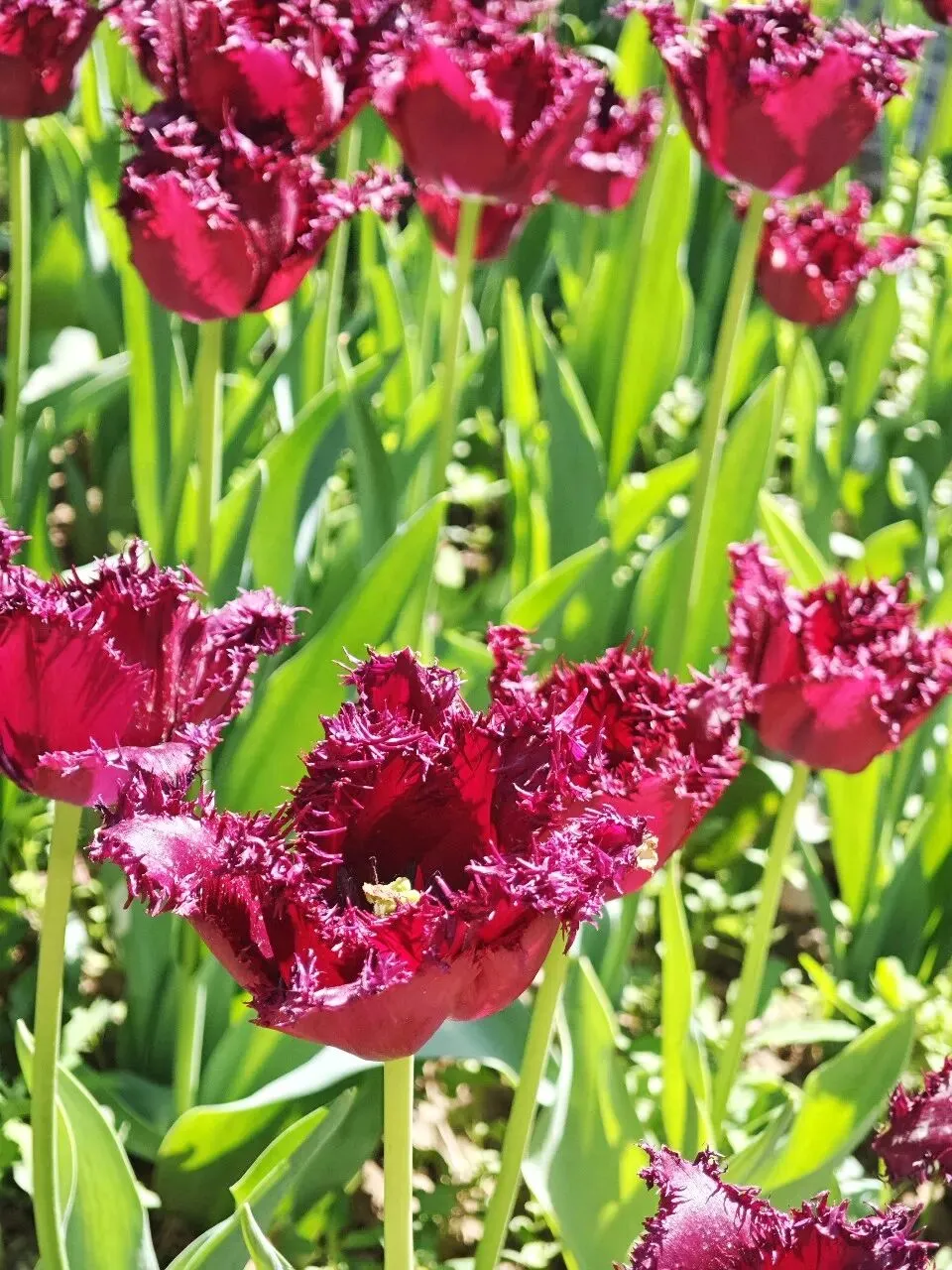 这花瓣儿是被谁手欠地撕过了吗?是谁干的?撕扇子的晴雯吗?没错,上面那些都是郁金香。不再是原来茶盅一样的造型,新品种。有的学了牡丹的雍容,有的学艺不精,说好听点儿,叫还有“缺憾美”。兰陵美酒郁金香,玉碗盛来琥珀光。