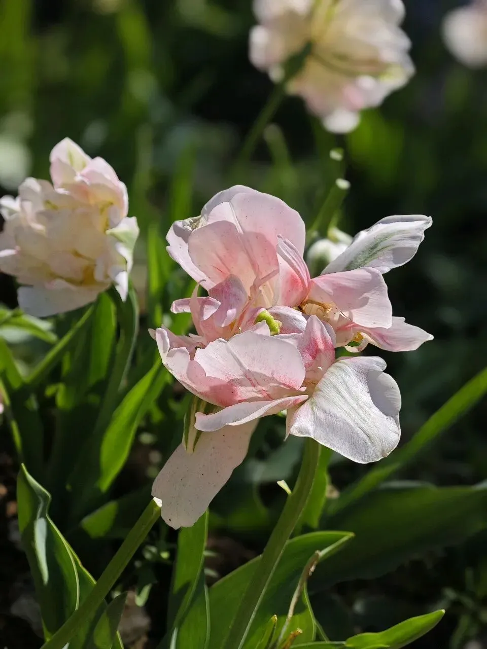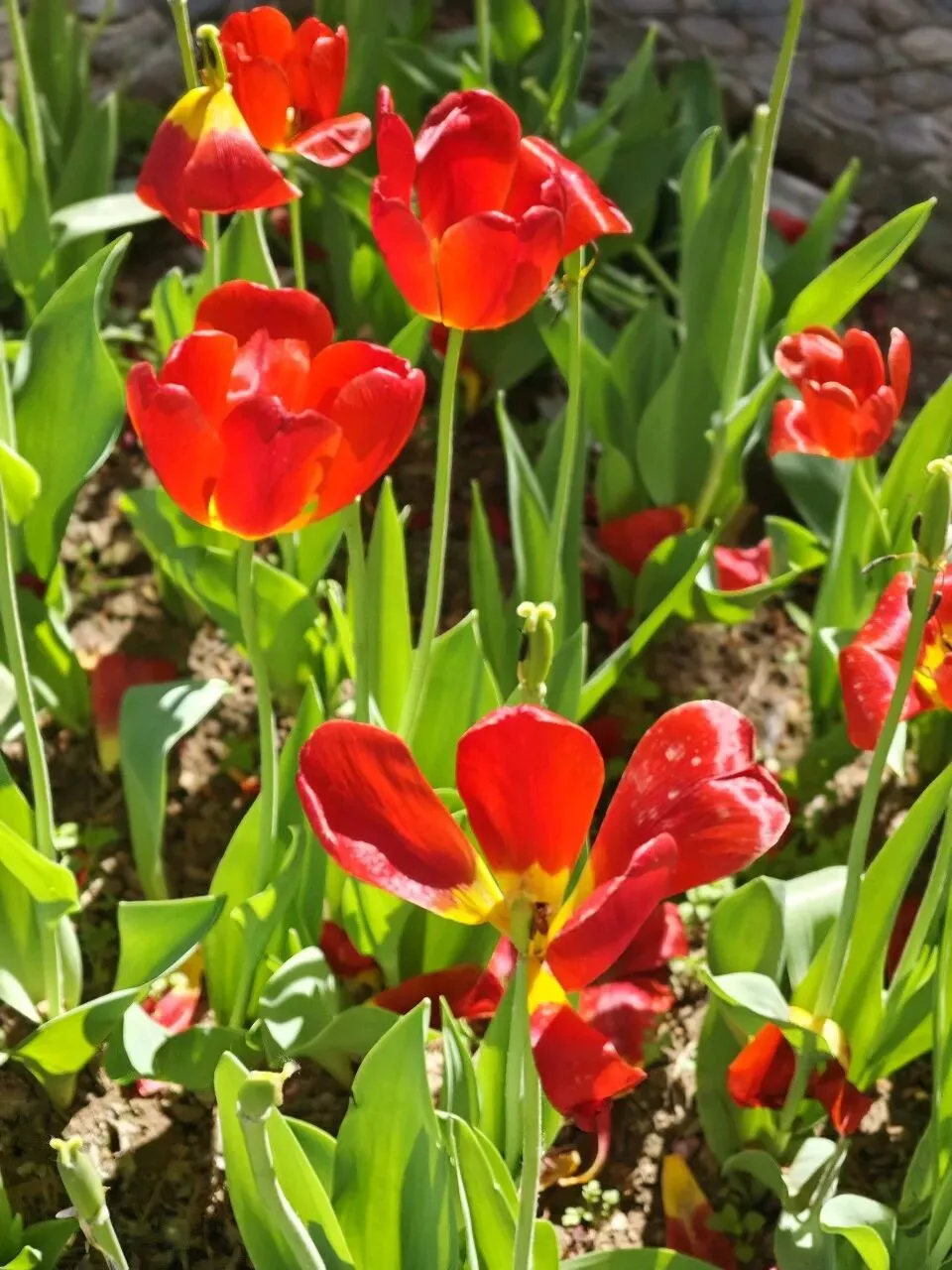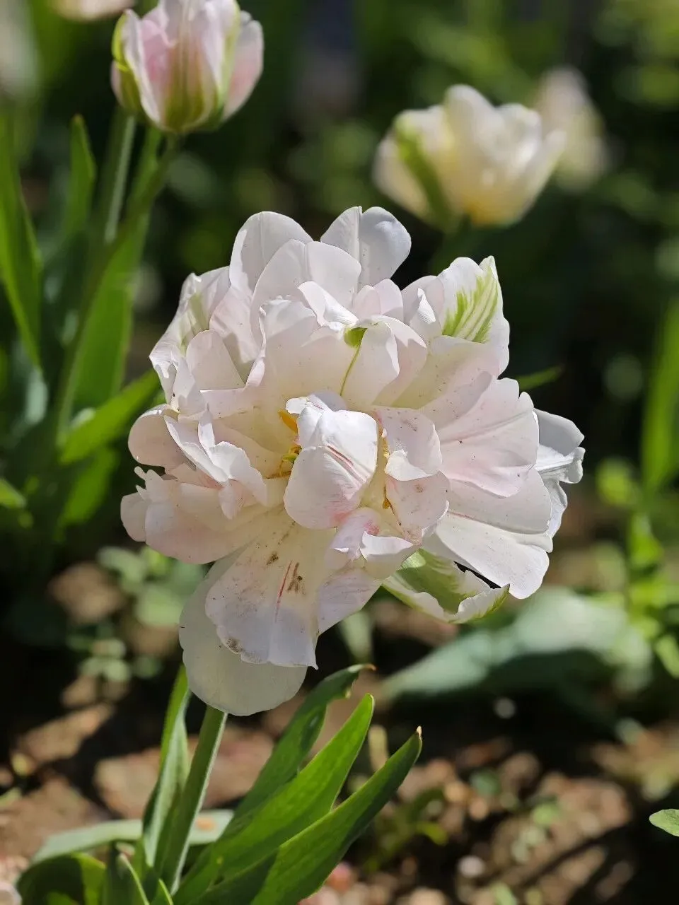这花瓣儿是被谁手欠地撕过了吗?是谁干的?撕扇子的晴雯吗?没错,上面那些都是郁金香。不再是原来茶盅一样的造型,新品种。有的学了牡丹的雍容,有的学艺不精,说好听点儿,叫还有“缺憾美”。兰陵美酒郁金香,玉碗盛来琥珀光。
