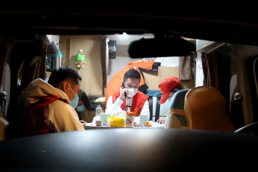 △1月9日,河北石家庄,夜幕降临,志愿者依然在车内忙碌着。