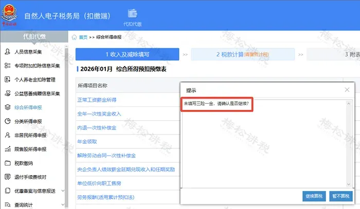 申报时,系统自动比对个税申报工资数据与社保、公积金缴纳数据,若二者金额显著不匹配,将直接触发风险提示;情节严重的,会阻断申报。