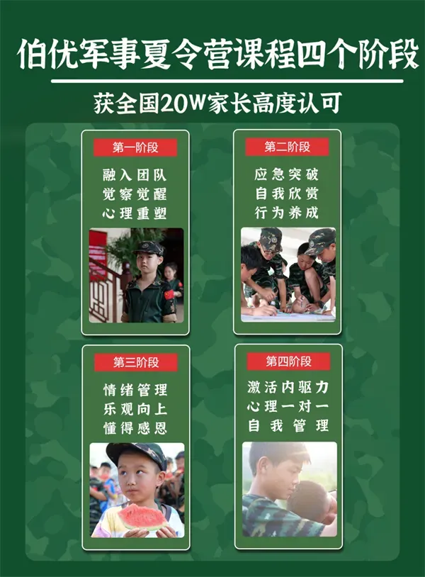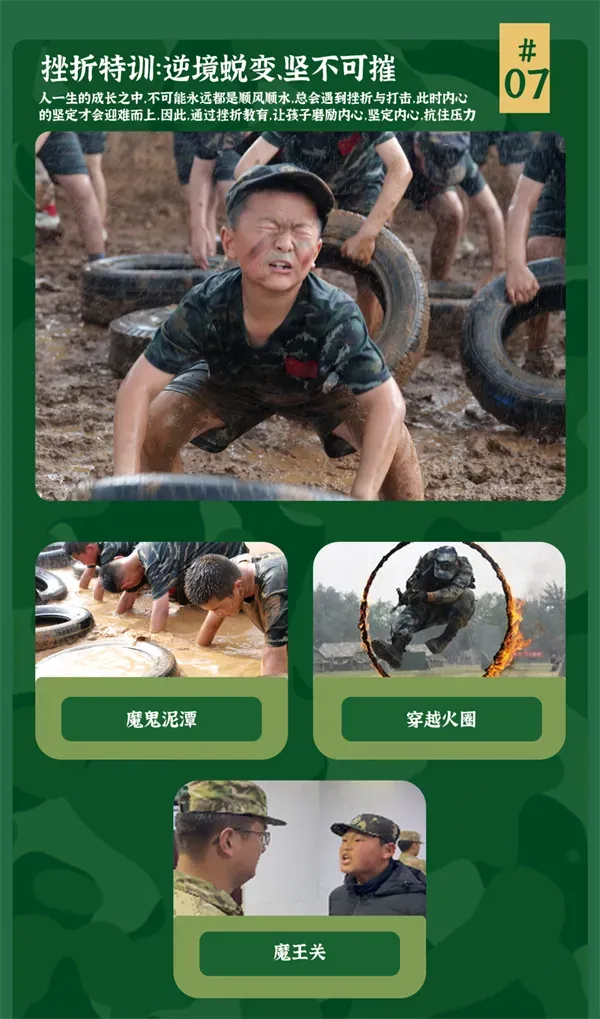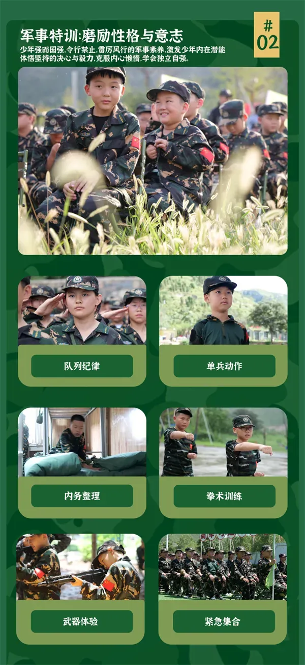 1、我们的训练强度会根据实际情况慢慢调整,一开始强度不高,基本上孩子都能适应,通过我们的训练孩子会逐渐适应我们的训练方式,我们带队教官都是有丰富的训练经验,能很好的把控训练的节奏,让孩子勇敢的锻炼起来。