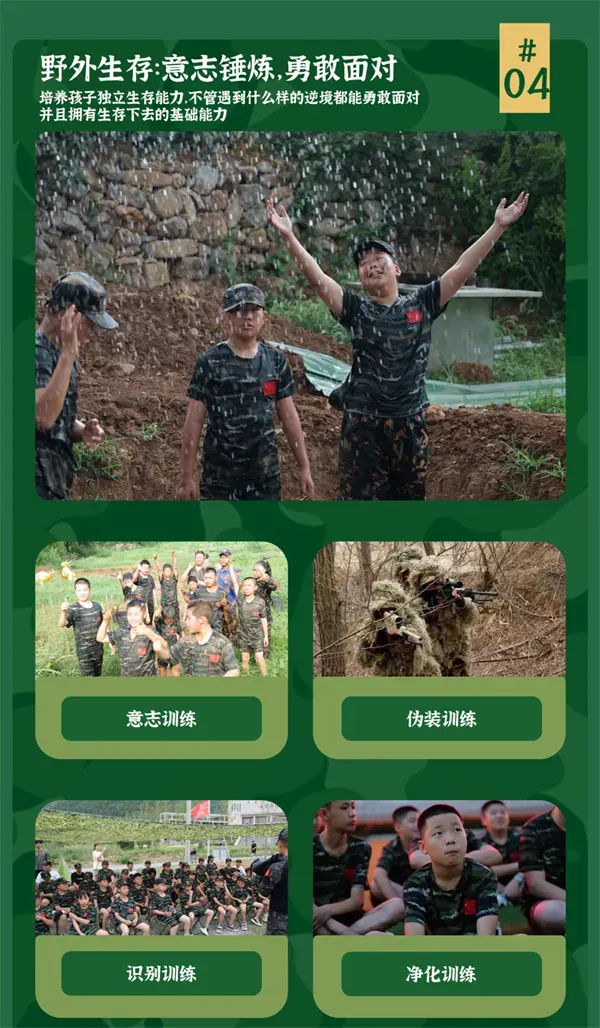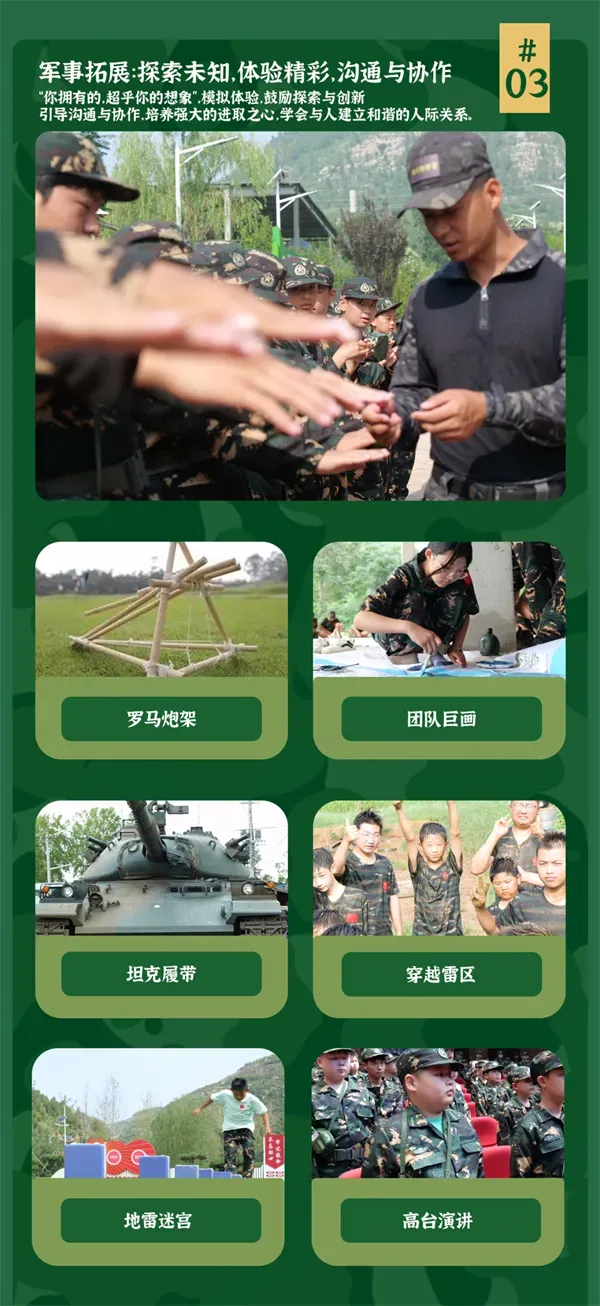 训练安全:所有训练课目以及拓展训练项目都是在安全范围内进行操作的,而不是一味追求高体验,所有设施教练都会提前进行安全检查,杜绝安全隐患