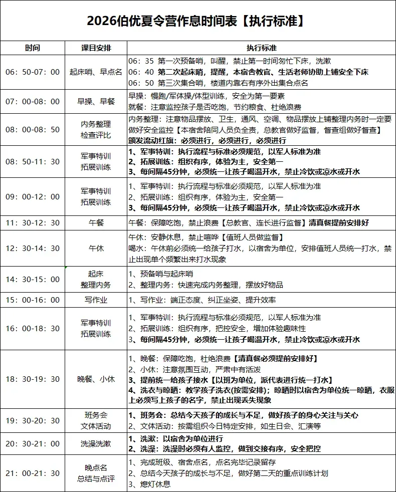 住宿条件:住宿为空调军事营8人间上下铺,宿舍统一由教官管理,负责营员的宿舍安全及生活起居
