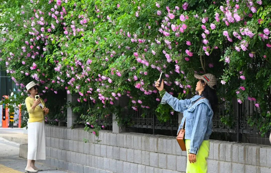 “这花开得太灿烂了,看着就让人欢喜,一定要推荐给朋友来打卡。”市民张女士一边在花墙前拍摄视频,一边对记者说。话音刚落,她便把视频发到了朋友圈,很快收获大量点赞和询问。