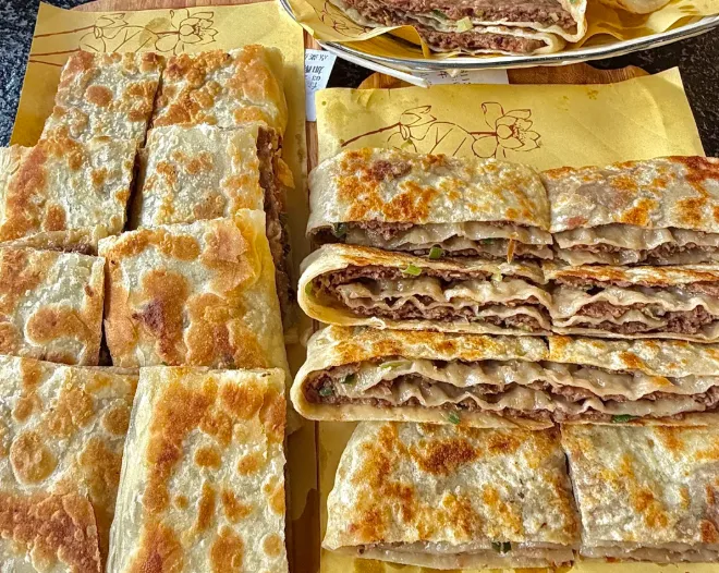 香河肉饼做法其实不玄。面皮擀薄,猪牛混合馅里拌葱姜、香油和少量清水,把肉打到发黏,再包进面里压成薄饼,小火慢烙。火不能太急,得让外皮一点点起酥,里面的汁也才留得住。