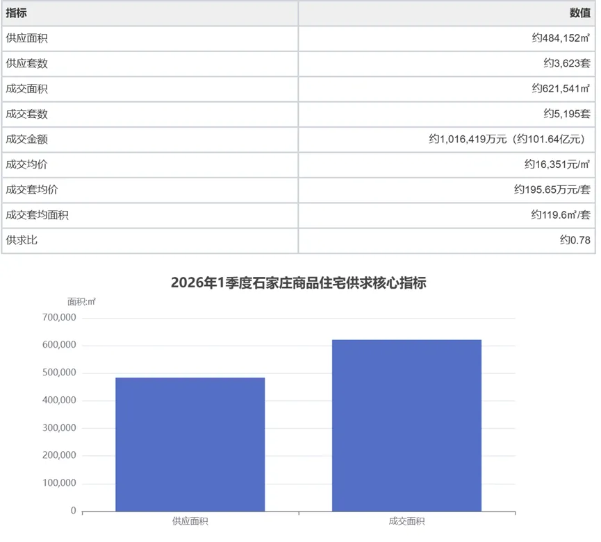 2026年1季度石家庄商品住宅市场总体表现如下: