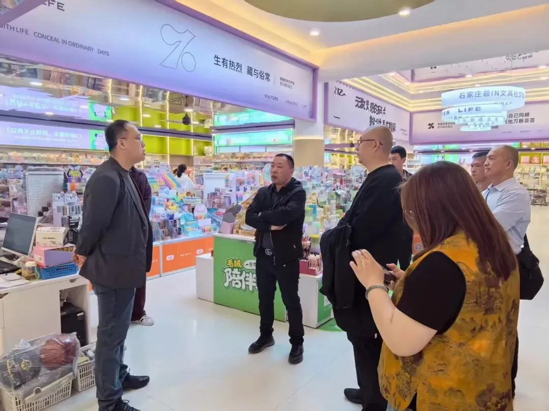 本次考察聚焦三大核心任务:拓视野、学理念、链货源。针对不同市场特点,公司制定了精准的学习方向,在石家庄南三条市场,将深入老牌小商品集散地,对接一手优质货源渠道。在正定国际小商品批发市场将重点考察商品品类布局、批零融合业态,探寻传统批发市场在新消费环境下的转型升级路径。在沧州明珠服装城,将重点考察服装批零结合与快反供应链模式;在火爆全网的正定夜市,考察学习“夜经济+场景化消费”的运营逻辑。 凌晨5:00,考察团从市场准时出发,带着对经营升级的迫切期待,踏上跨省考察学习之旅。 14日上午,广饶考察团首站抵达华北老牌小商品集散地——石家庄南三条市场。这里品类齐全、价格透明、渠道灵活,是许多批发商的“源头仓”。 走进市场,琳琅满目的商品分区明确、陈列有序,从日用百货到针织家纺,从小家电到工艺礼品,供应链直通产地工厂。广饶商户们倍加珍惜此次考察学习机会,结合自身经营品类,主动分组深入各专业街区,与南三条的优质供应商展开面对面洽谈。从选品比价到样品定样,从起订门槛到物流周期,大家问得细、聊得实,纷纷与供应商互加微信,建立长期联络渠道。通过深入对接,部分商户与供货方初步达成合作意向。 考察团一行还实地走访了庄里庄外文具、文创等集合店进行调研,详细了解了门店在选品布局、场景营造及品牌运营等方面的情况,并与负责人李经理进行了深入交流,为后续合作与经验借鉴打下良好基础。 14日下午,在圆满完成对石家庄南三条市场的紧凑考察后,广饶考察团马不停蹄来到正定国际小商品市场。 集团副总裁金位平在百忙之中亲自带队,全程参与考察。河北正华商贸公司执行总裁李樟潮、正定国际小商品城集团有限公司董事长刘光地携副总裁黄景利、张珂、张建等高层领导热情接待了考察团一行。