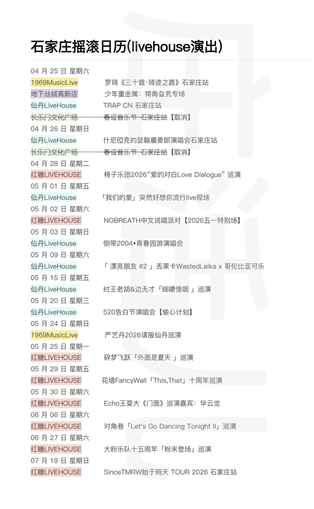 >石家庄摇滚日历(Livehouse演出)4.21更新