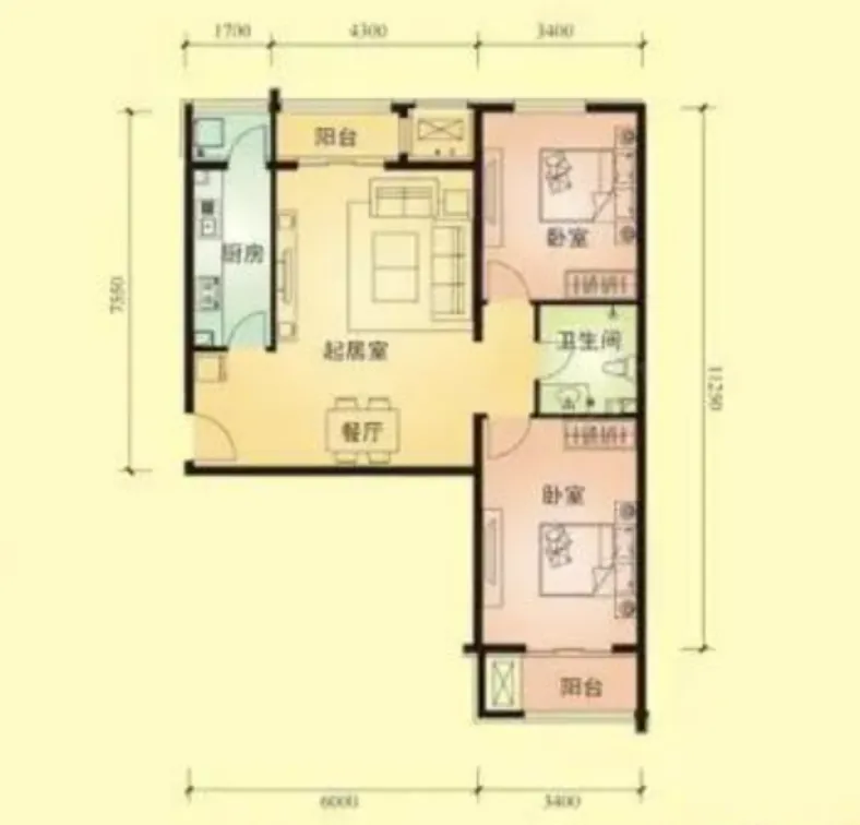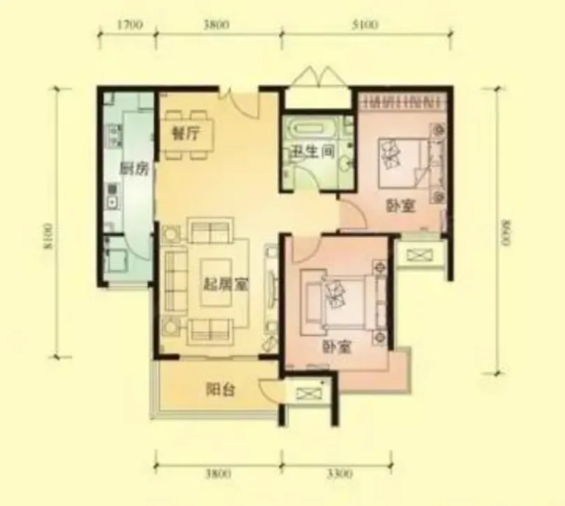 总价:84-97 万(单价 1.2-1.38 万 /㎡)