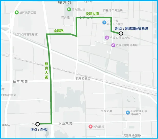 3.调后路径:下行:青翠街、绵河路、十里铺西街、北二环外辅路、谈固大街、北二环内辅路、青年街、丰收路、胜利西街、胜利大街、中山路、公里街。
