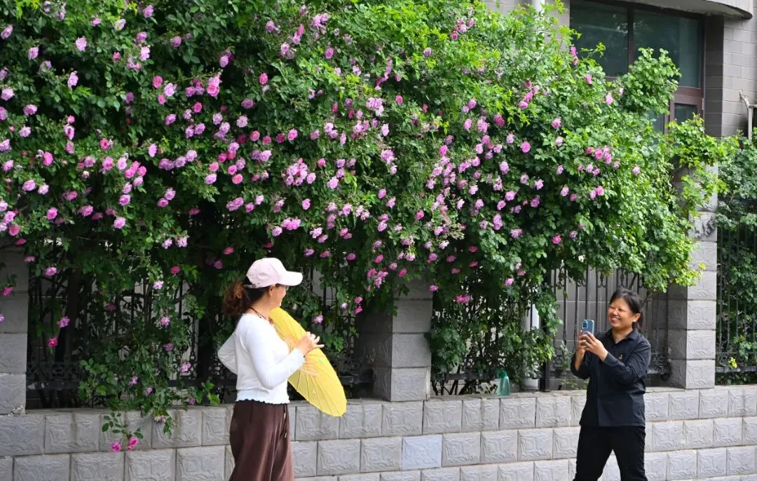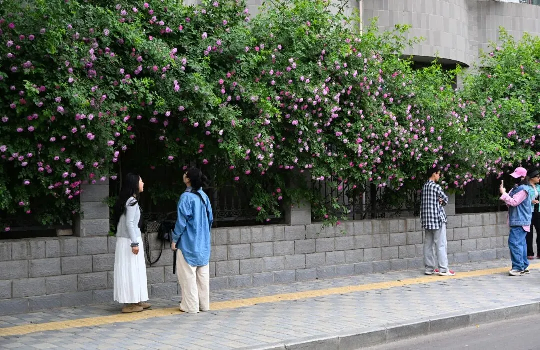 热门蔷薇花墙吸引市民打卡