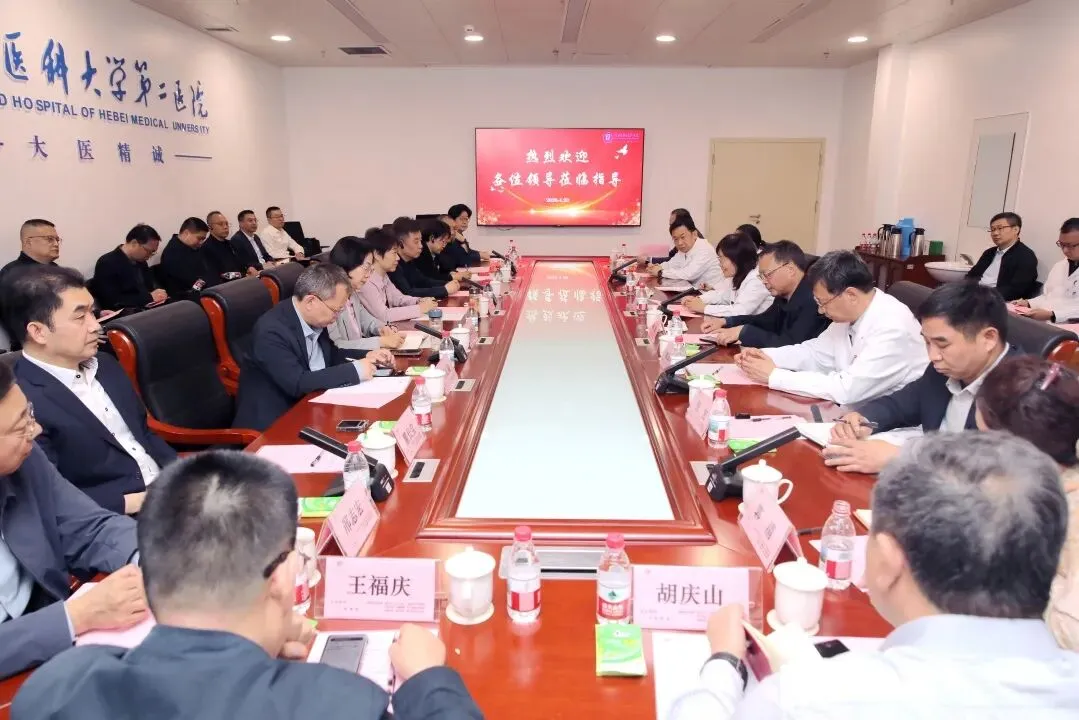 4月20日,石家庄市卫生健康委党组书记许尽晖带领委相关领导,委属八家医院书记、院长及职能科室负责人莅临我院,围绕医院高质量发展、改善患者就医体验等方面实地走访、座谈交流。我院党委书记王贵英、副院长陈康、阎雪、耿左军、于宝海及相关职能部门负责人参加活动。