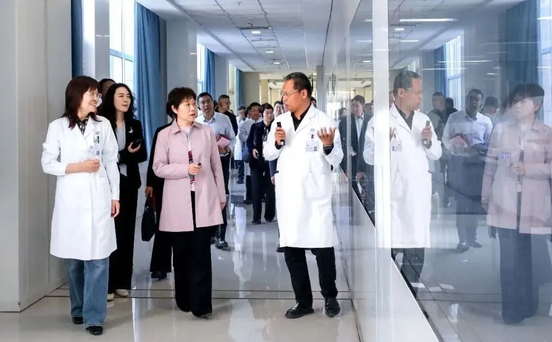 与会人员实地参观鹿泉院区MDT诊室、检验科、智慧病房、国际医疗病房等特色科室,详细了解科室建设布局、诊疗服务流程及智慧化管理情况等。
