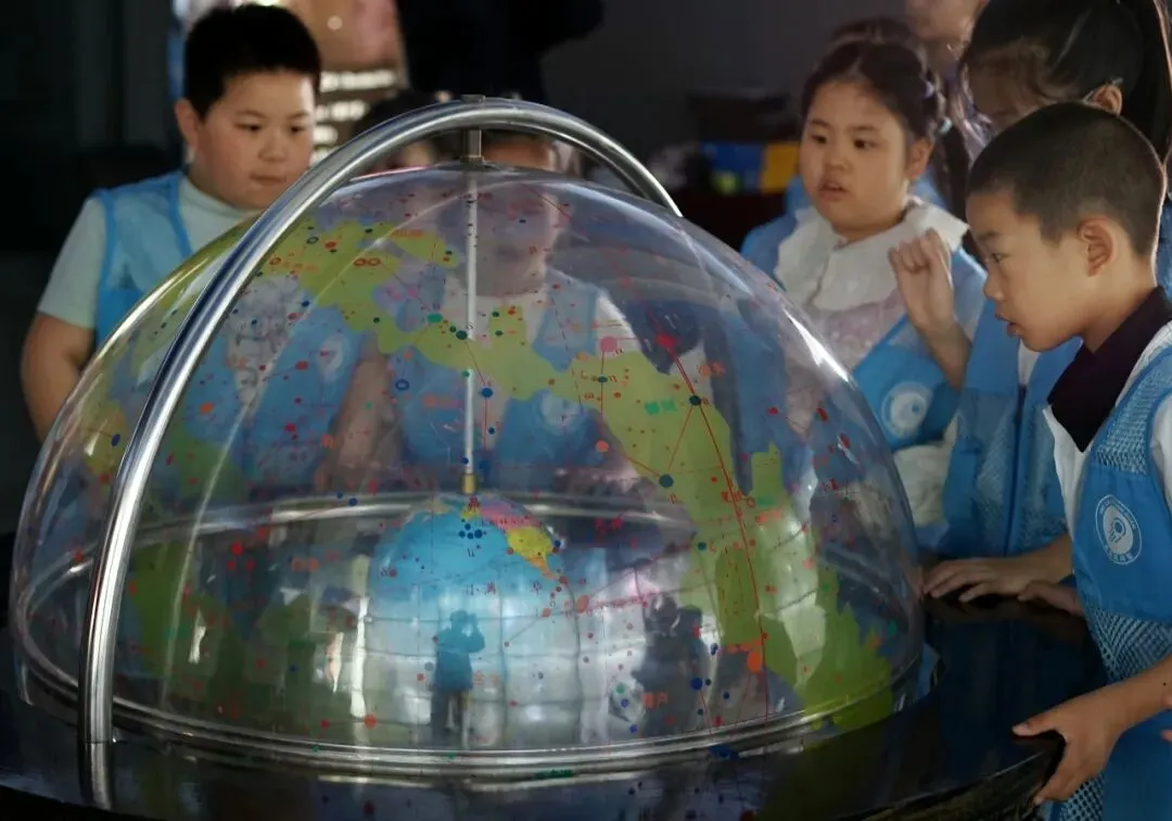 在讲解员老师的带领下,未来新闻官走进天文馆展厅。浩瀚的宇宙星系图景映入眼帘,让大家直观感受到了宇宙的广袤与震撼,也对太阳系的构成有了更立体、深刻的认识。展厅中央的大型地球仪静静矗立,诉说着宇宙的奥秘。