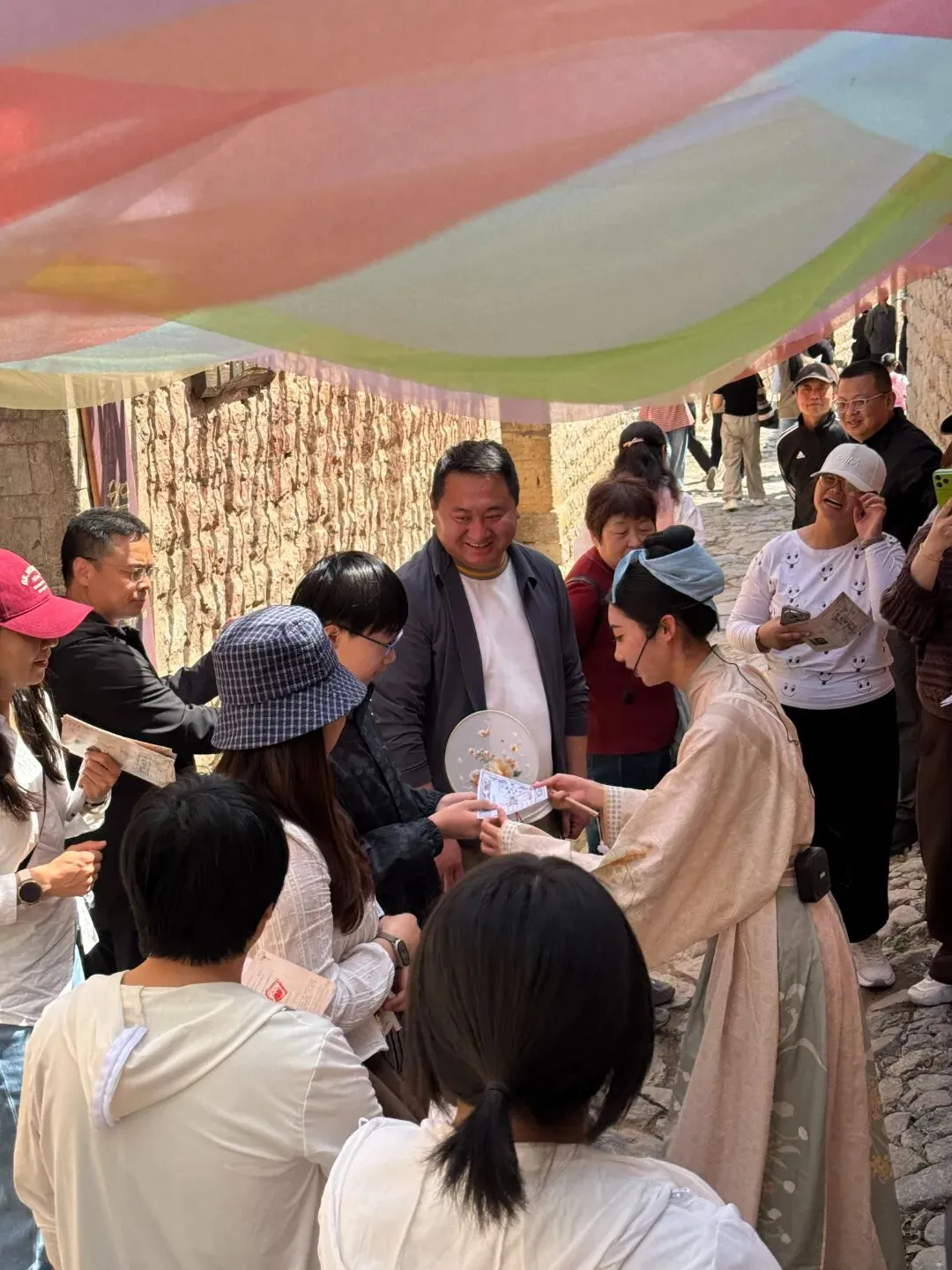 区别于传统景区观光游览模式,此次演绎打破游客“被动观赏”的局限,打造强参与、高互动的游玩体验。游客在完成NPC发布的任务过程中,不仅能赢取“银票”奖励,还可在“通关文牒”上收集专属特色印章,一步步解锁游览剧情,全程参与感、体验感拉满,演出现场始终洋溢着欢声笑语。