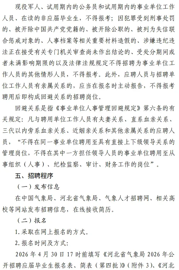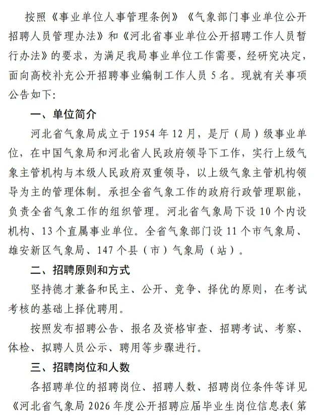 >编制!邯郸石家庄有岗!河北省气象事业单位2026年度招聘公告